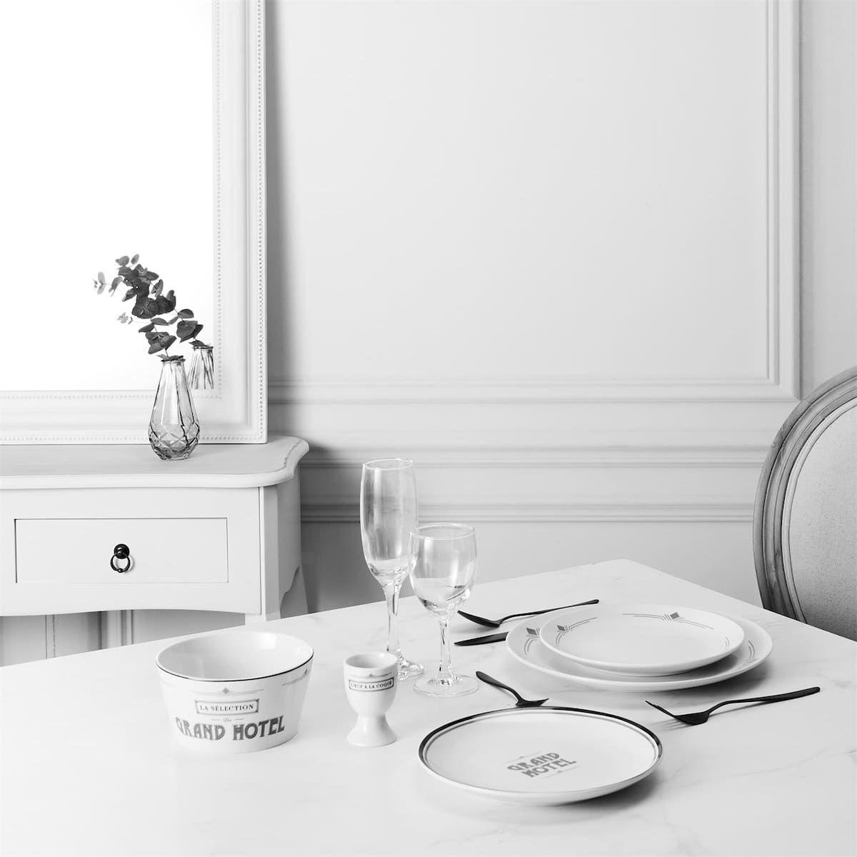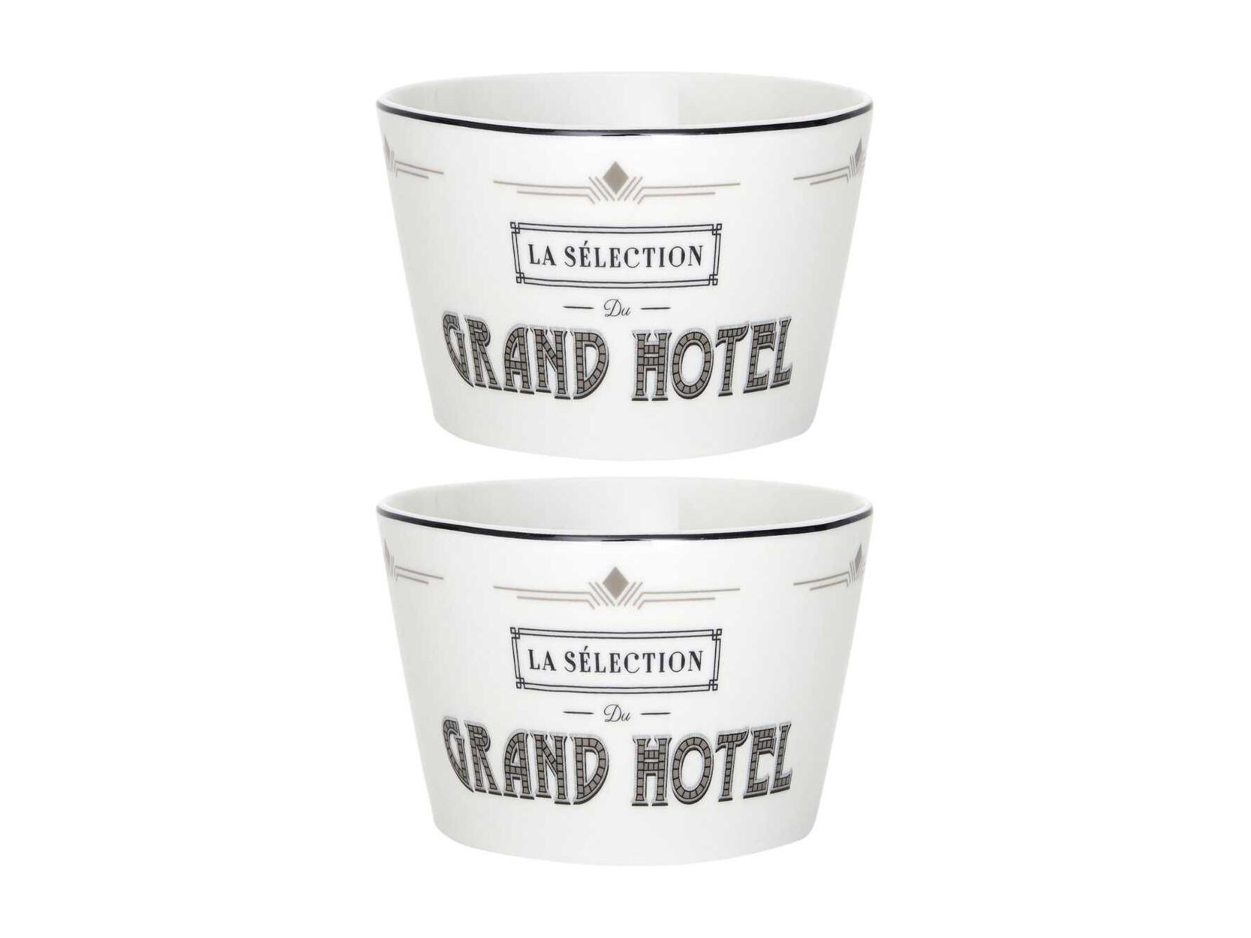 Set de 2 bols en céramique blanc et noir avec message "Grand Hotel" (Ø14 cm)
