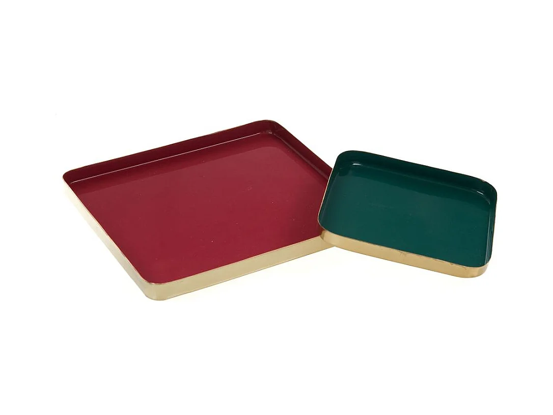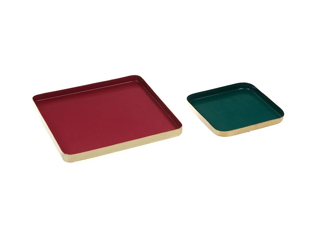Plateaux ronds en métal patiné et verre (Lot de 3)