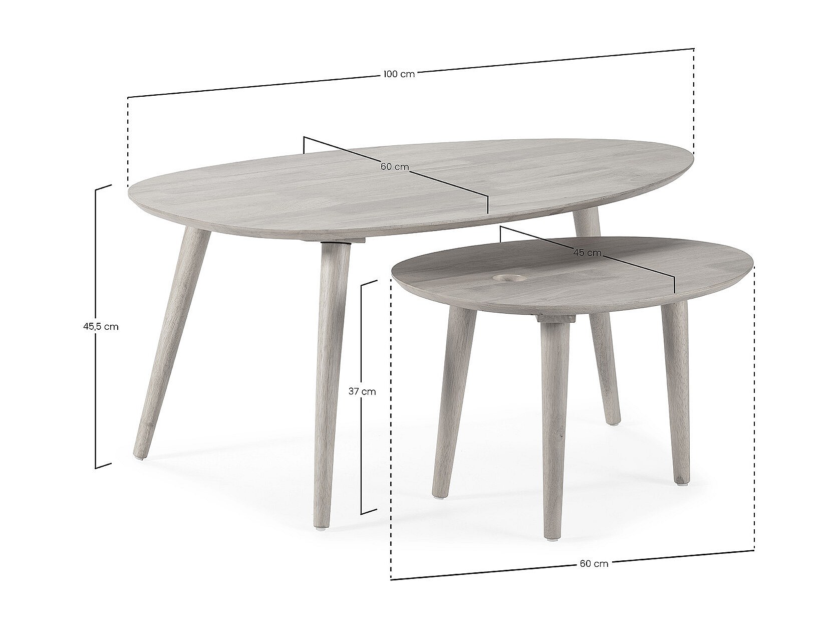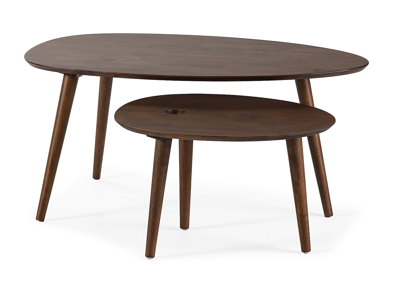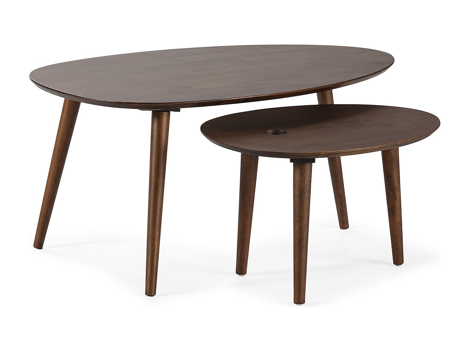 ASTRID - Lot de 2 tables basses ovales gigogne en acacia teinté noyer