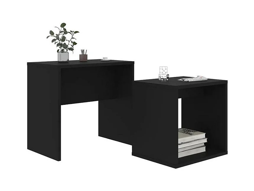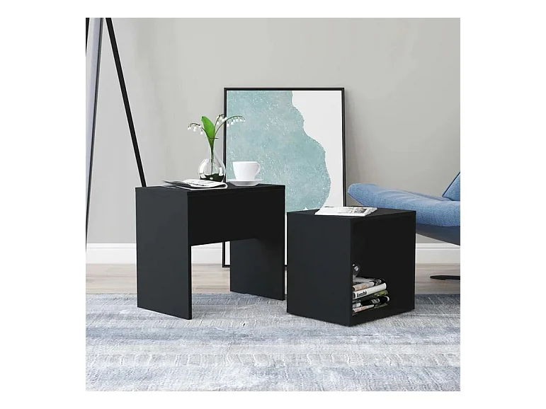 Tables basses gigognes de salon 2 pcs noir bois d'ingénierie et métal SHL16064