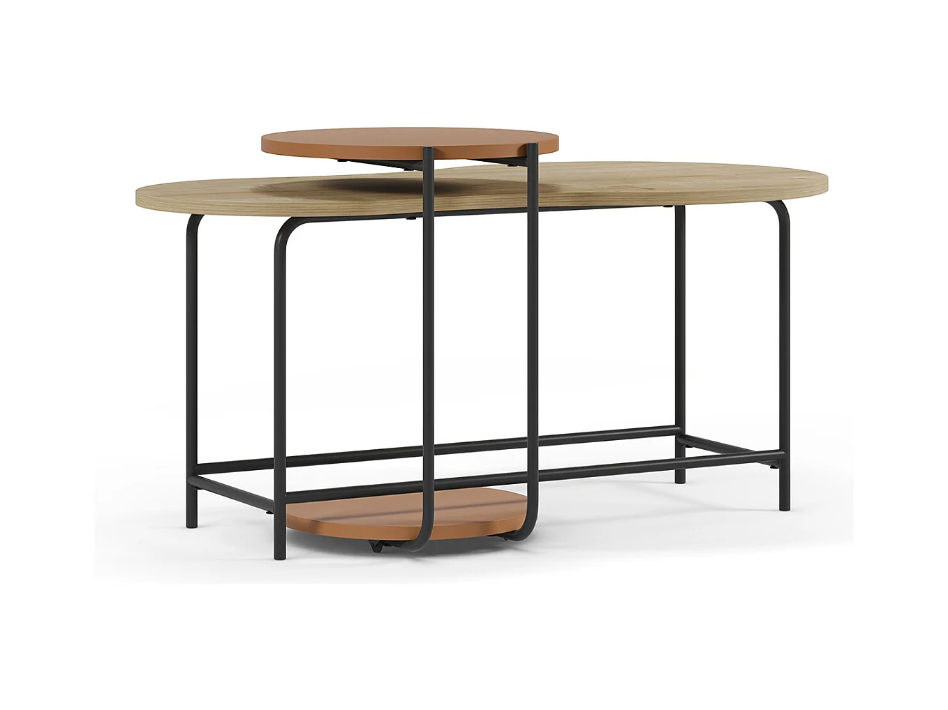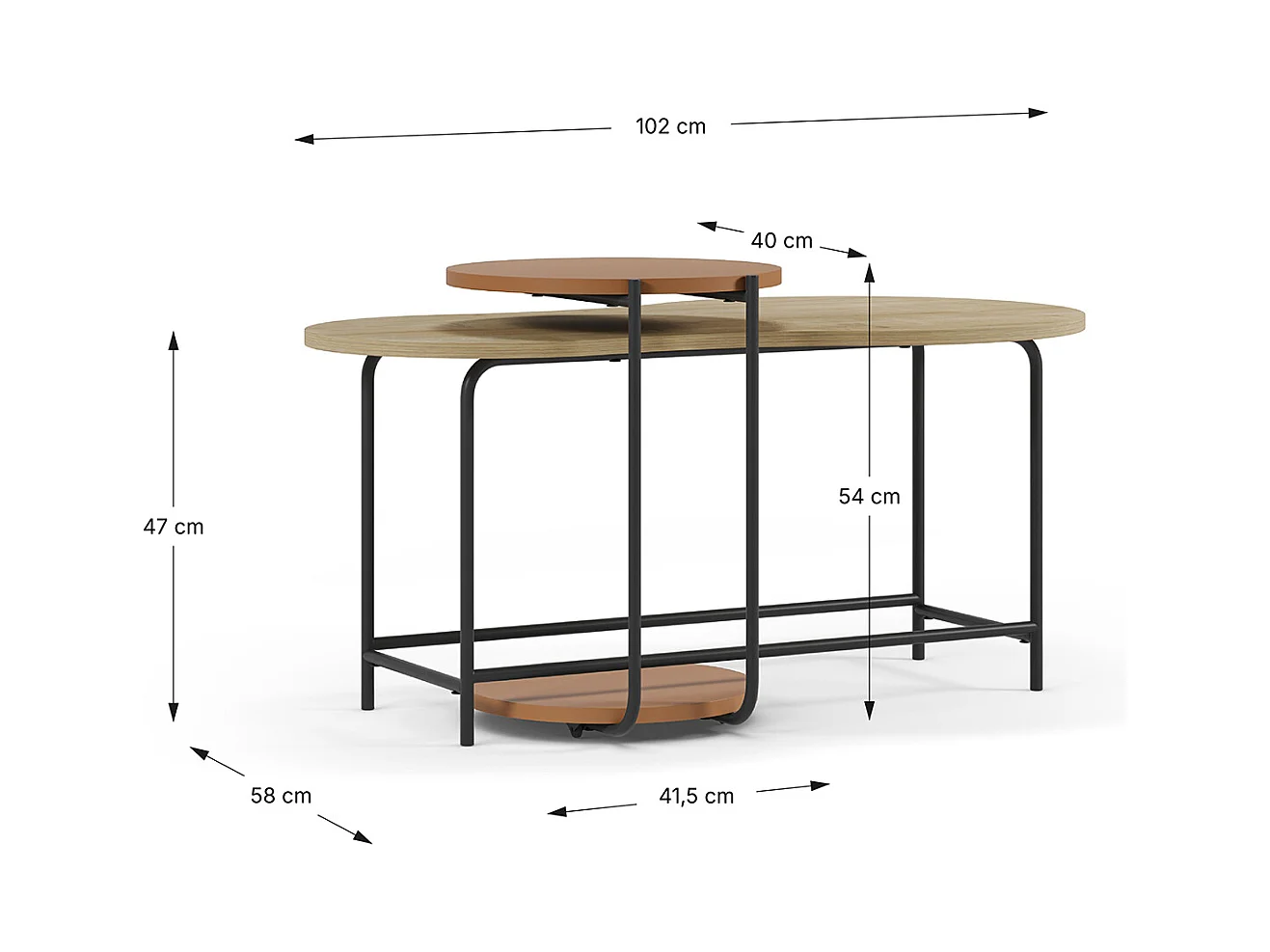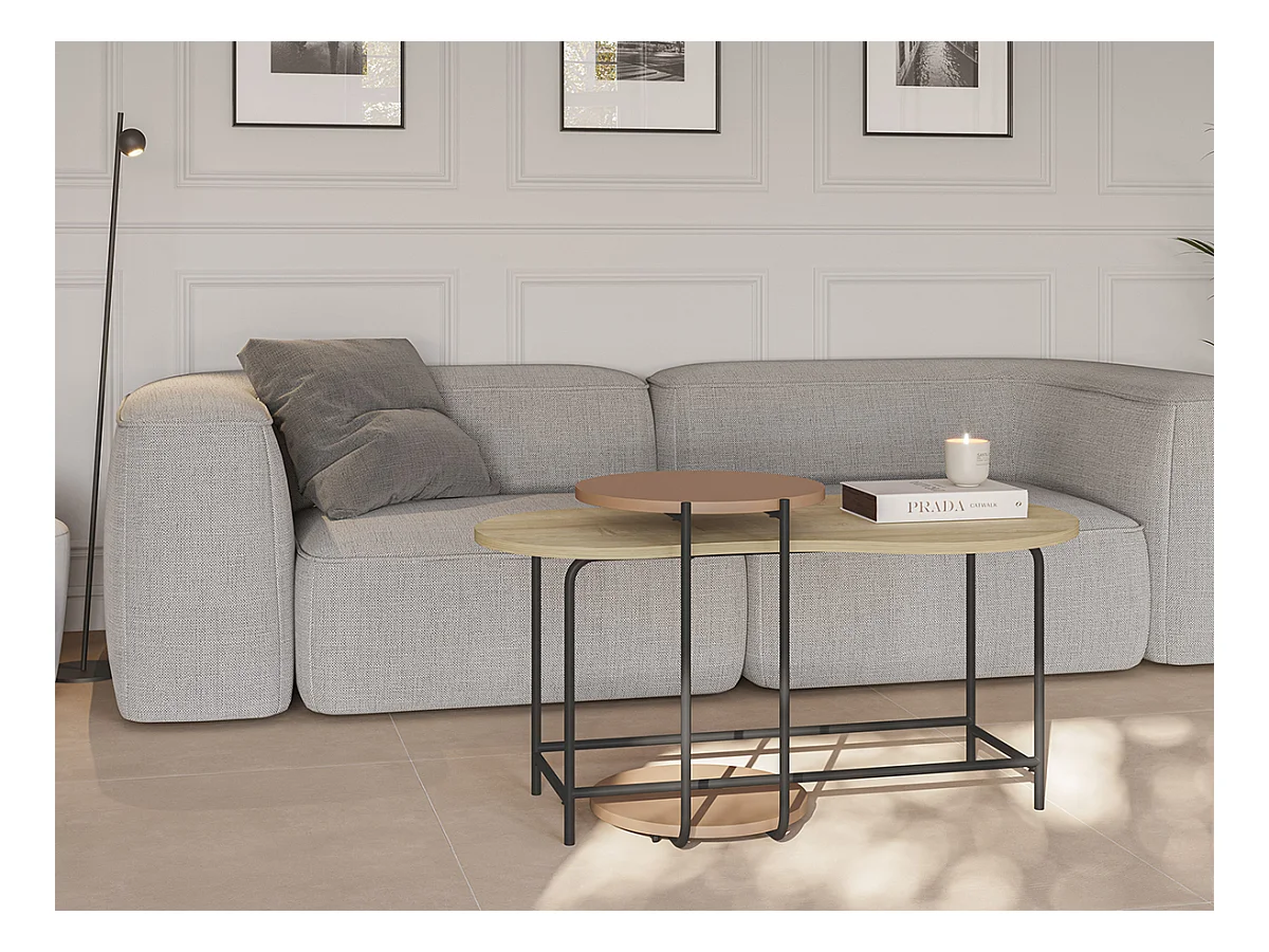 Set de 2 tables basses, tables de salon aspect bois coloris chêne, terracotta et métal coloris noir