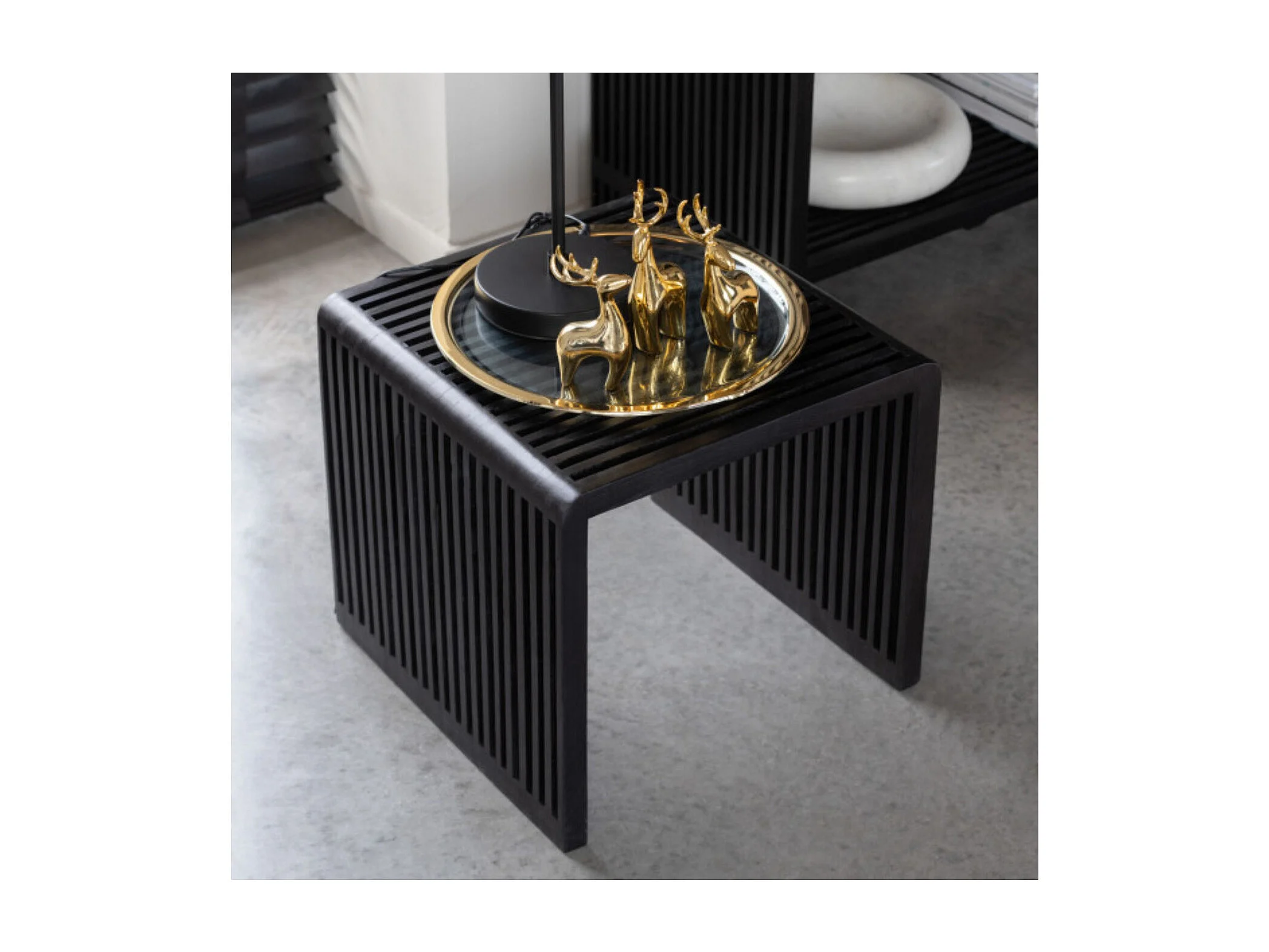 Lot de 2 Tables Basses en Bois "Teck" 50cm Noir