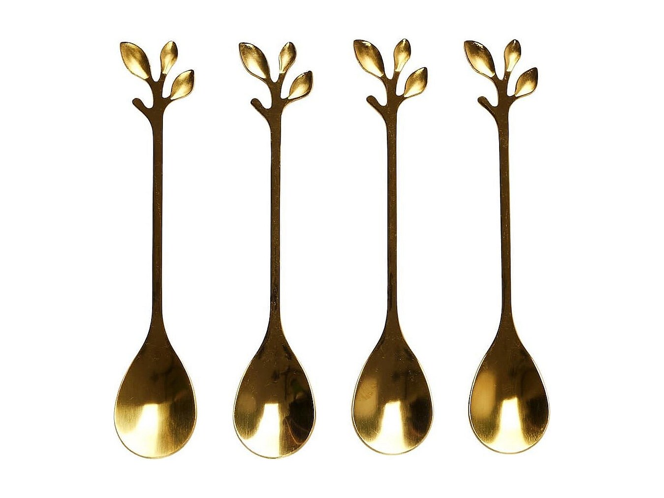 Set de 4 cuillères à café dorées en acier inoxydable style feuilles