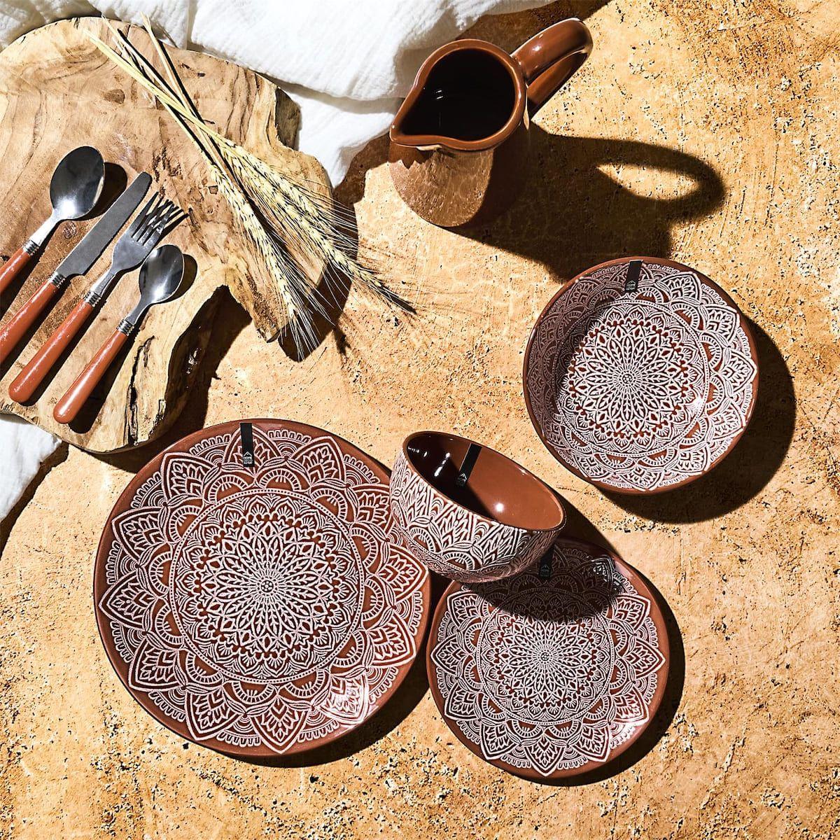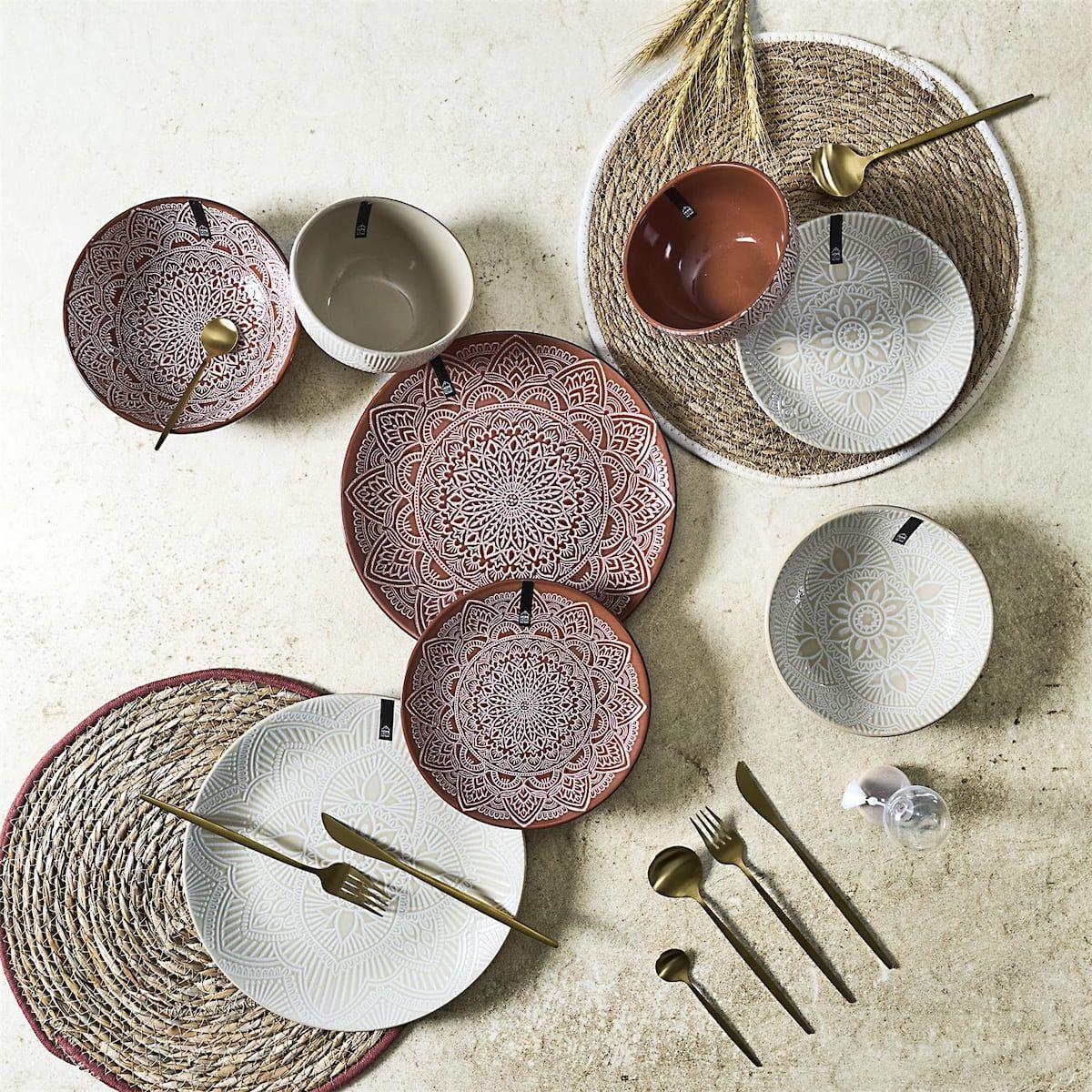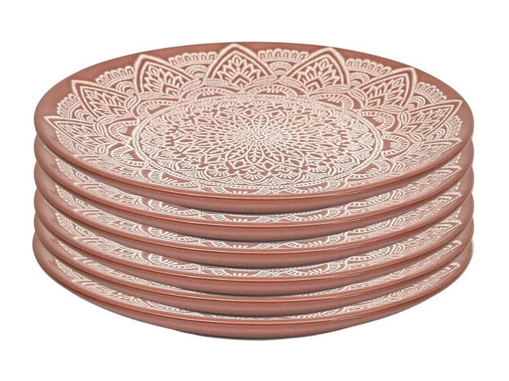 Set de 6 assiettes à dessert en céramique terracotta motif mandala (Ø19,5 cm) - AKKA