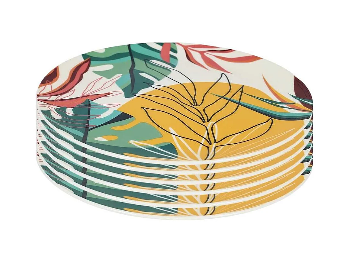 Set de 6 assiettes à dessert en plastique paradis exotique (Ø20cm) - ANTILLES