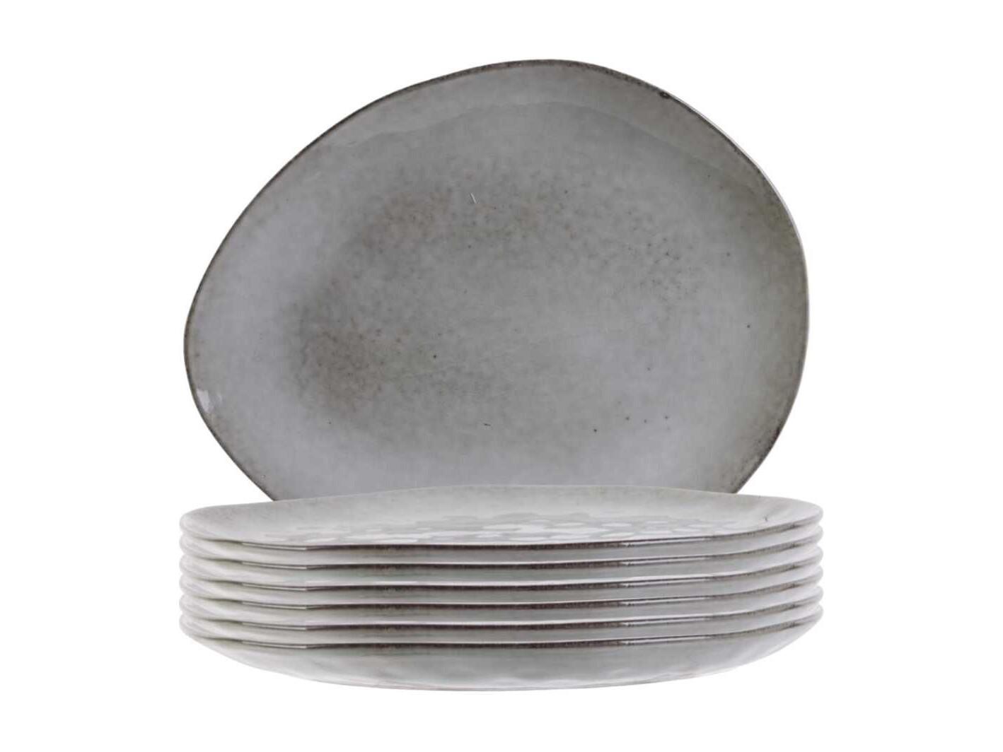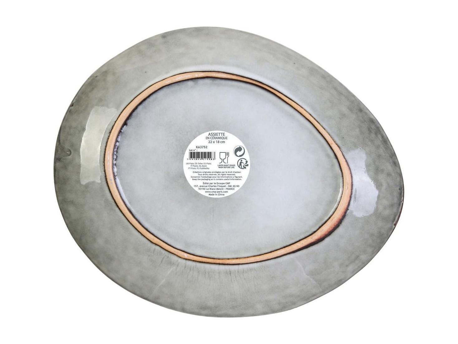 Set de 6 assiettes à dessert galet en céramique au grés du temps gris (22x18cm) - GALET