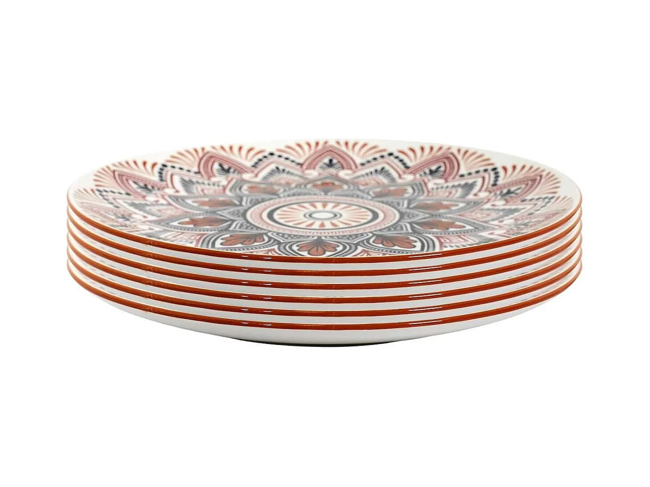 Set de 6 assiettes plates en porcelaine orange mandala (Ø26cm) - MANDALA
