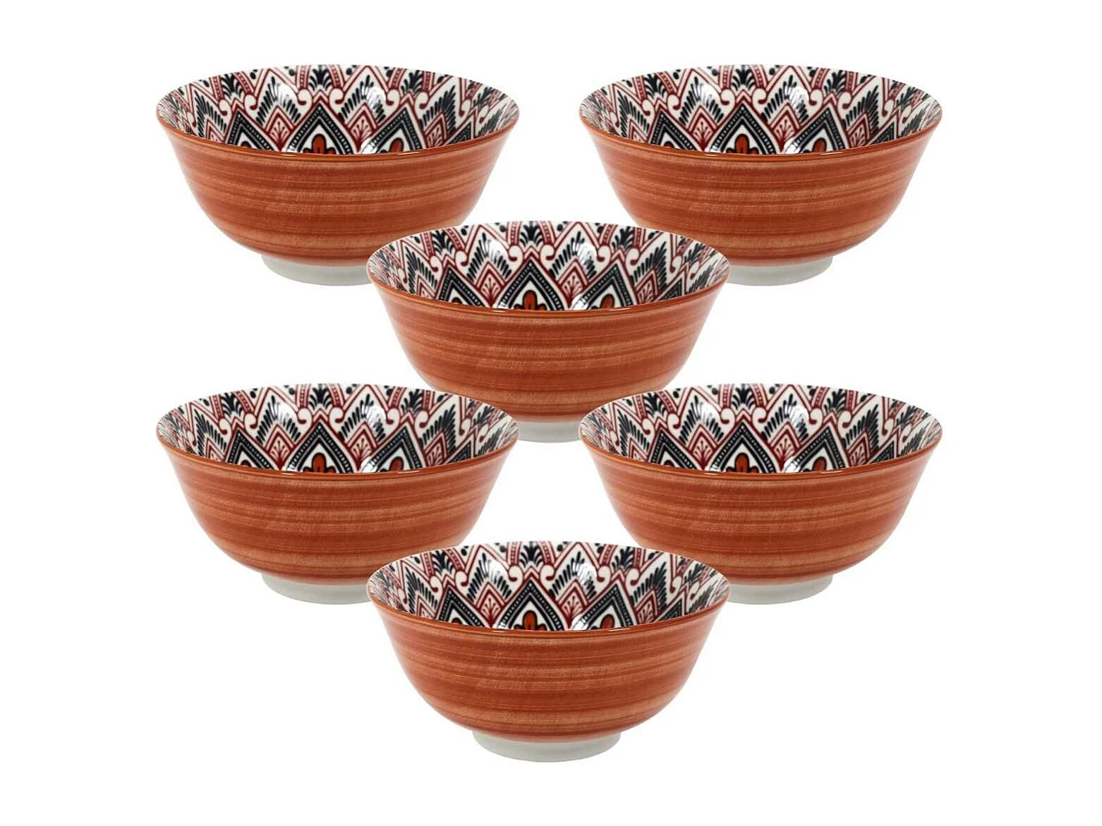 Set de 6 bols en porcelaine orange mandala (Ø15cm) - MANDALA