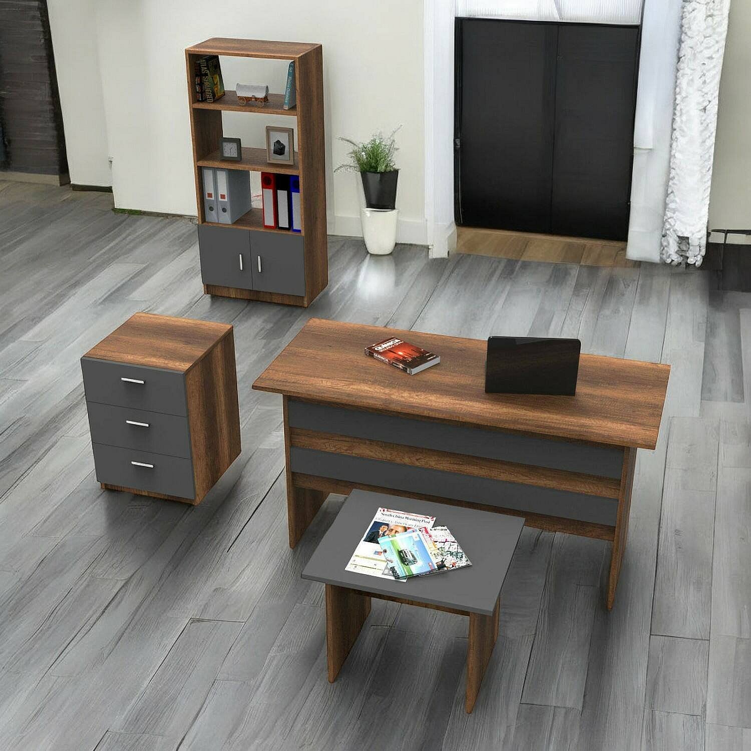 Set de bureau Dgiampagli, Composition du studio, Kit de bureau, Ensemble de bureau et de tiroirs, Noyer et Anthracite