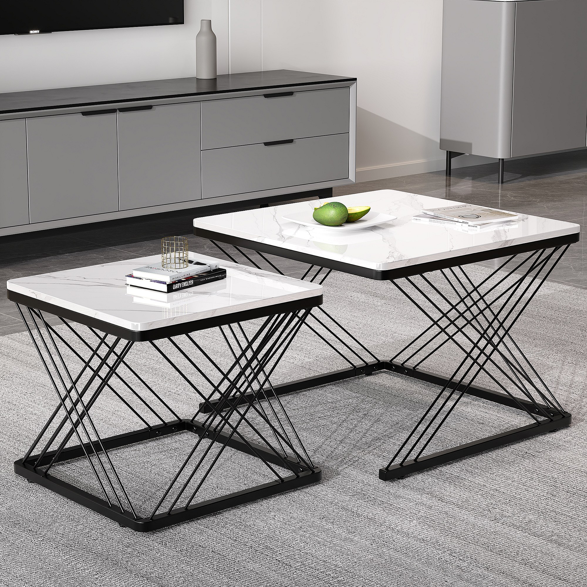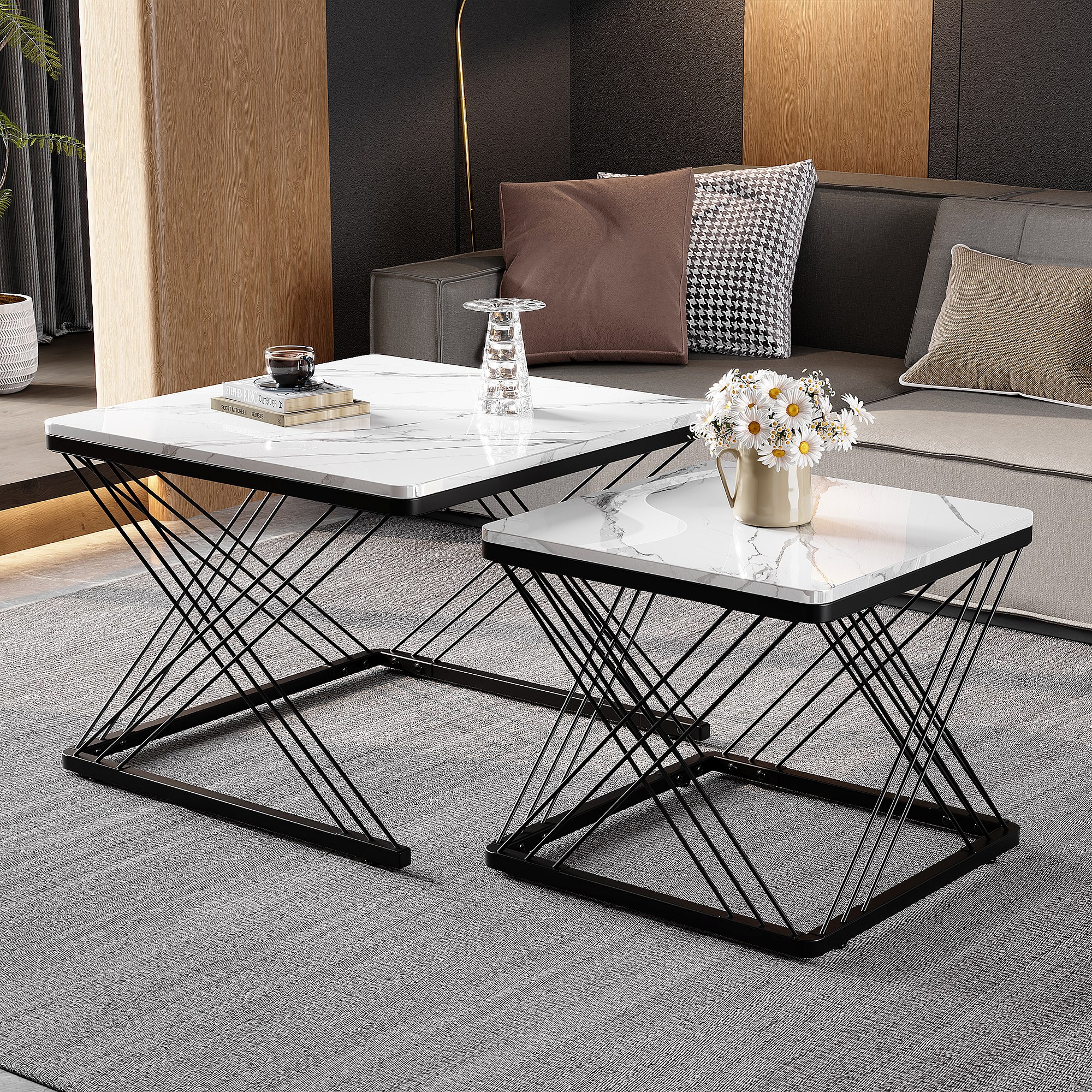 URBAN MEUBLE Ensemble de 2 tables basses gigognes élégantes effet marbre brillant