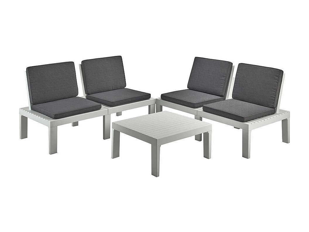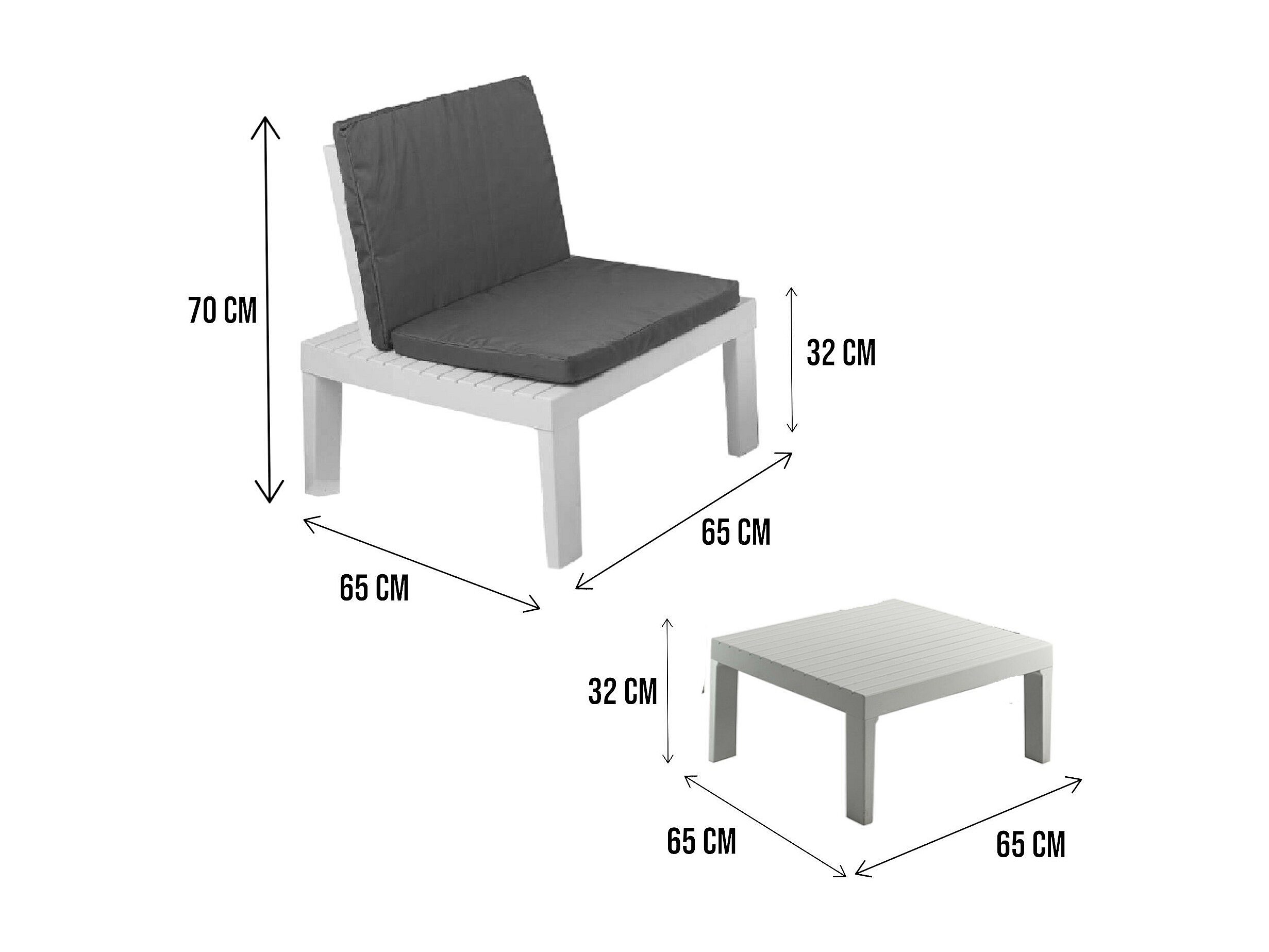 Ensemble de salon d'extérieur Dmur, Composition de jardin avec 4 sièges avec dossier et 1 module multifonction, Lounge avec coussins, 100% Made in Italy, Blanc