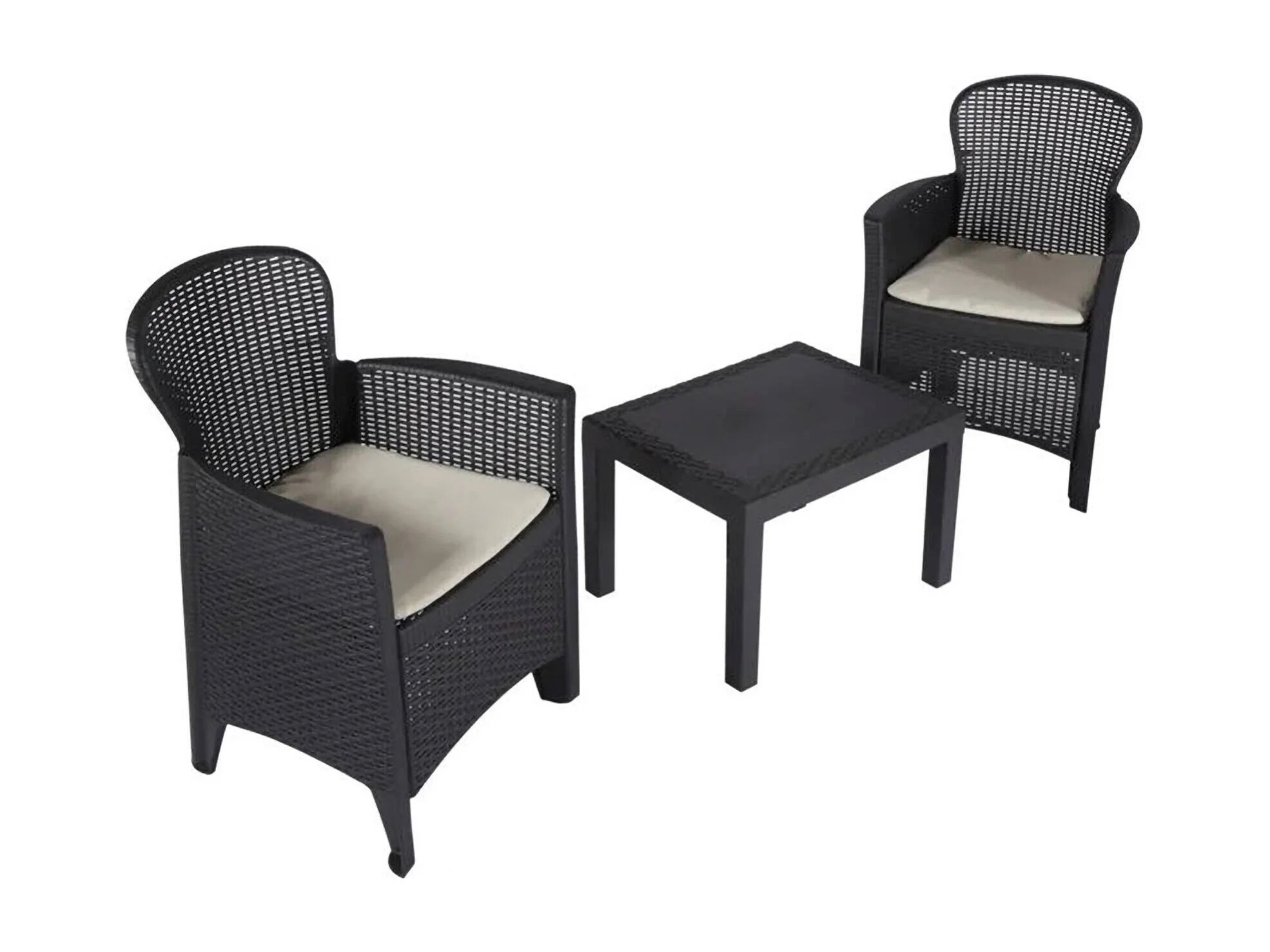 Salon de jardin 3 pièces avec coussins Noir PVC