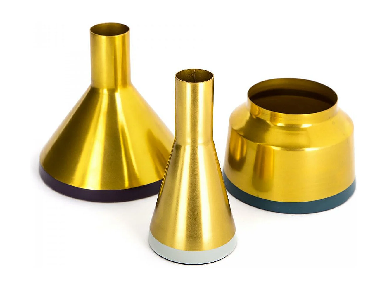 Ensemble de deux vases en aluminium avec une finition brillante