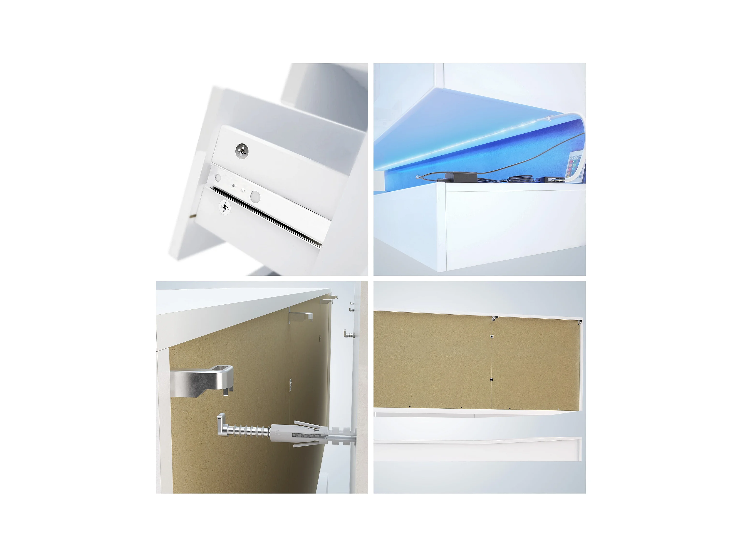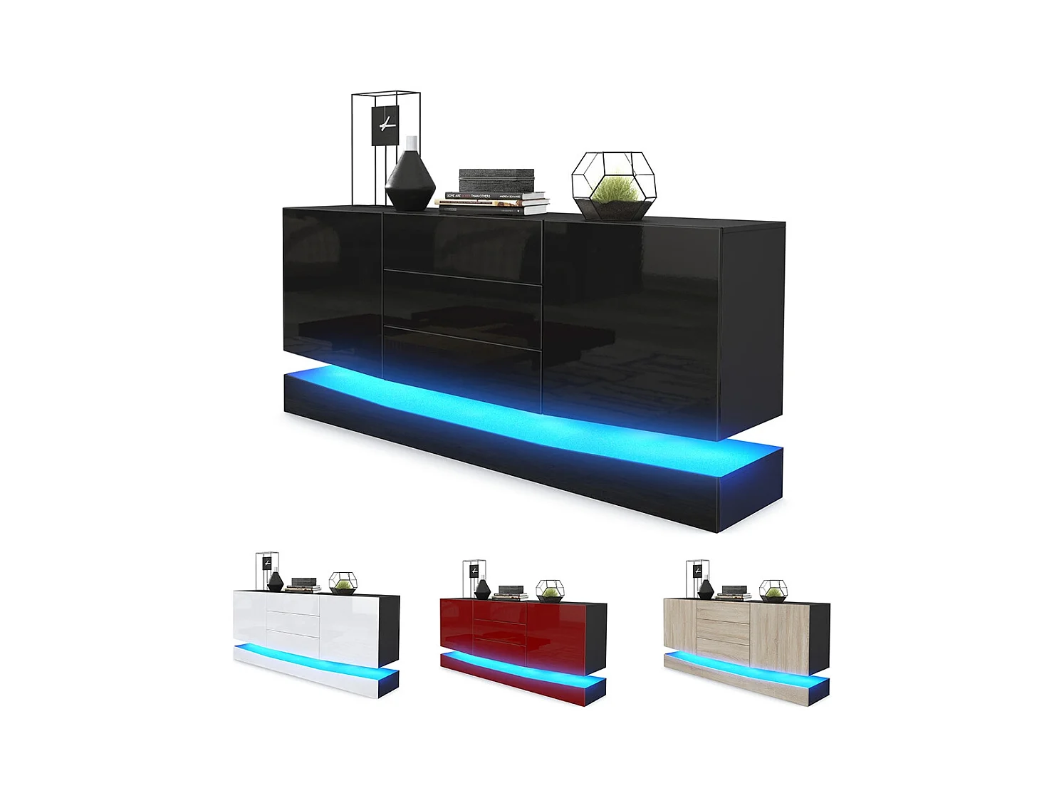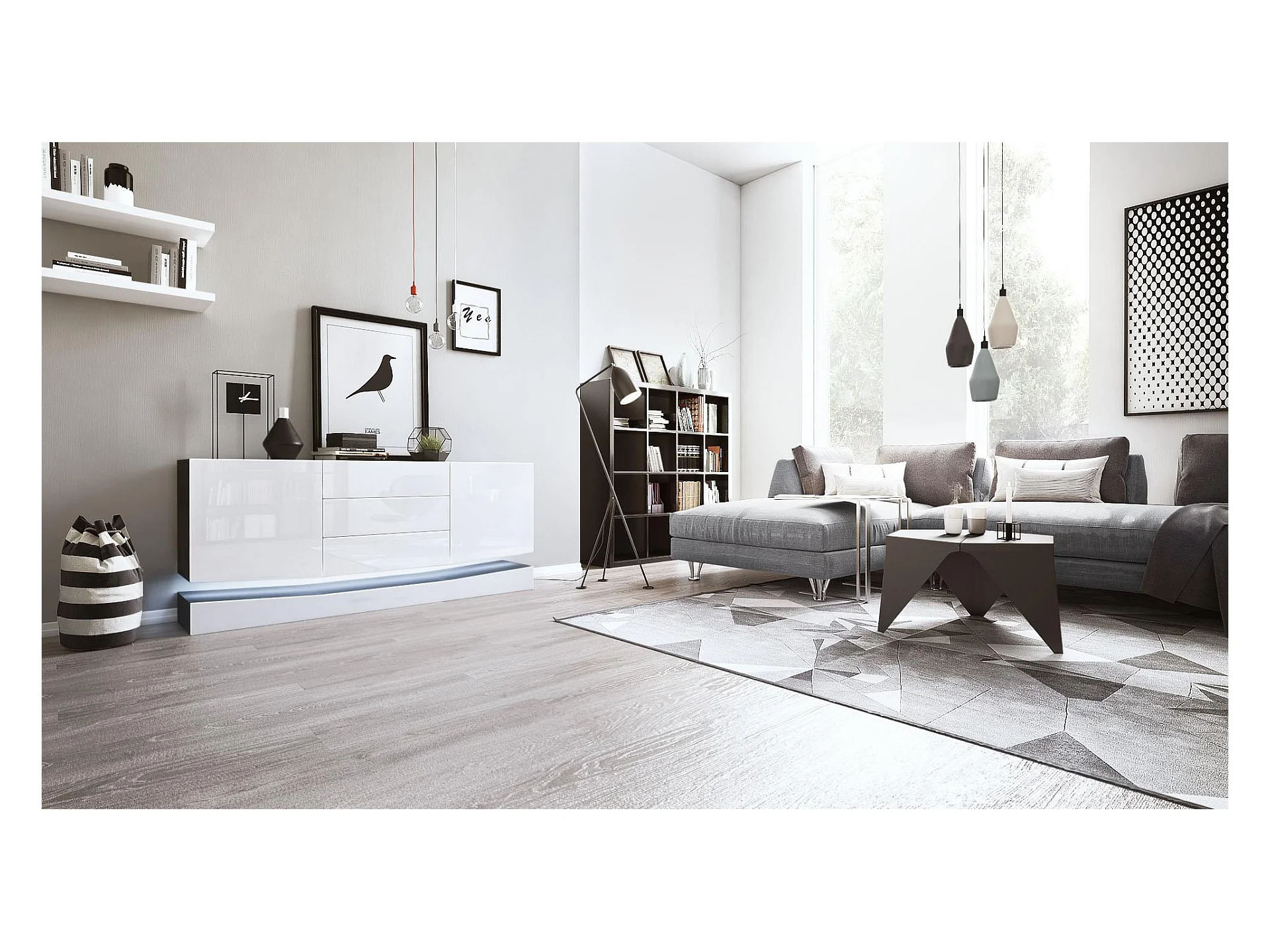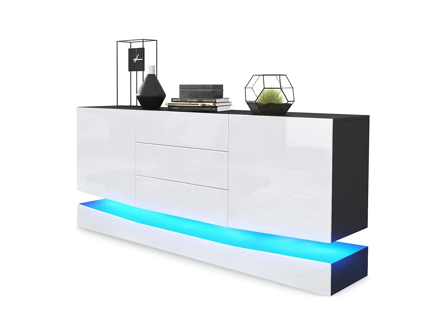 Sideboard City, noir mat/blanc haute brillance y compris LED - Commode moderne pour votre salon (178 x 72 x 38 cm)