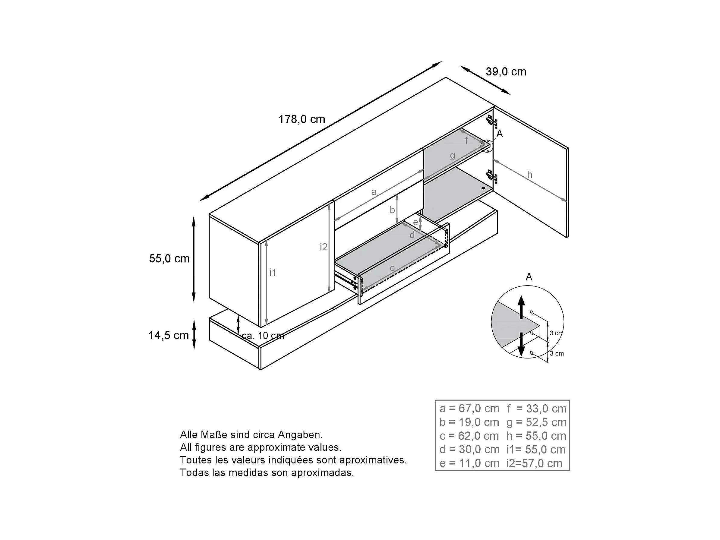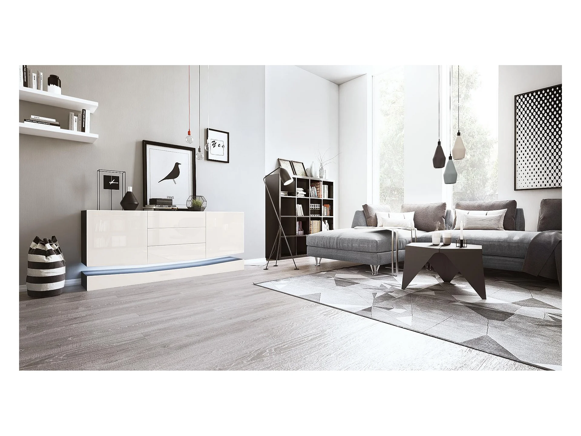 Sideboard City, noir mat/crème haute brillance y compris LED - Commode moderne pour votre salon (178 x 72 x 38 cm)