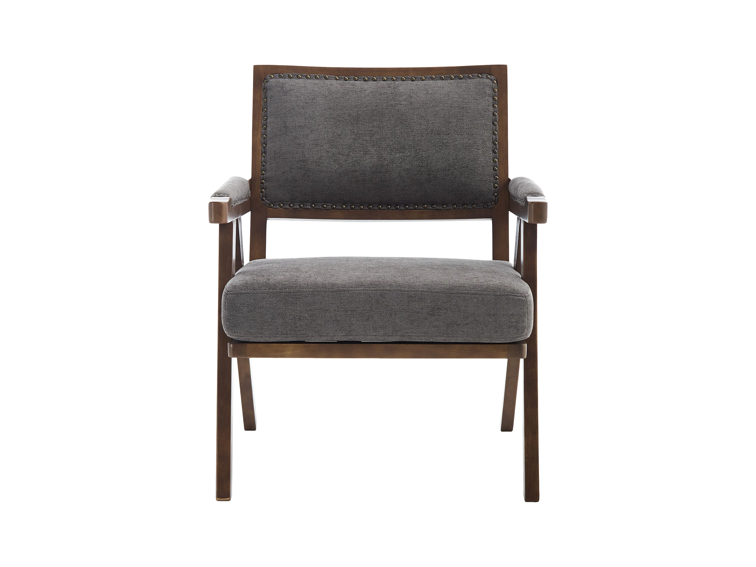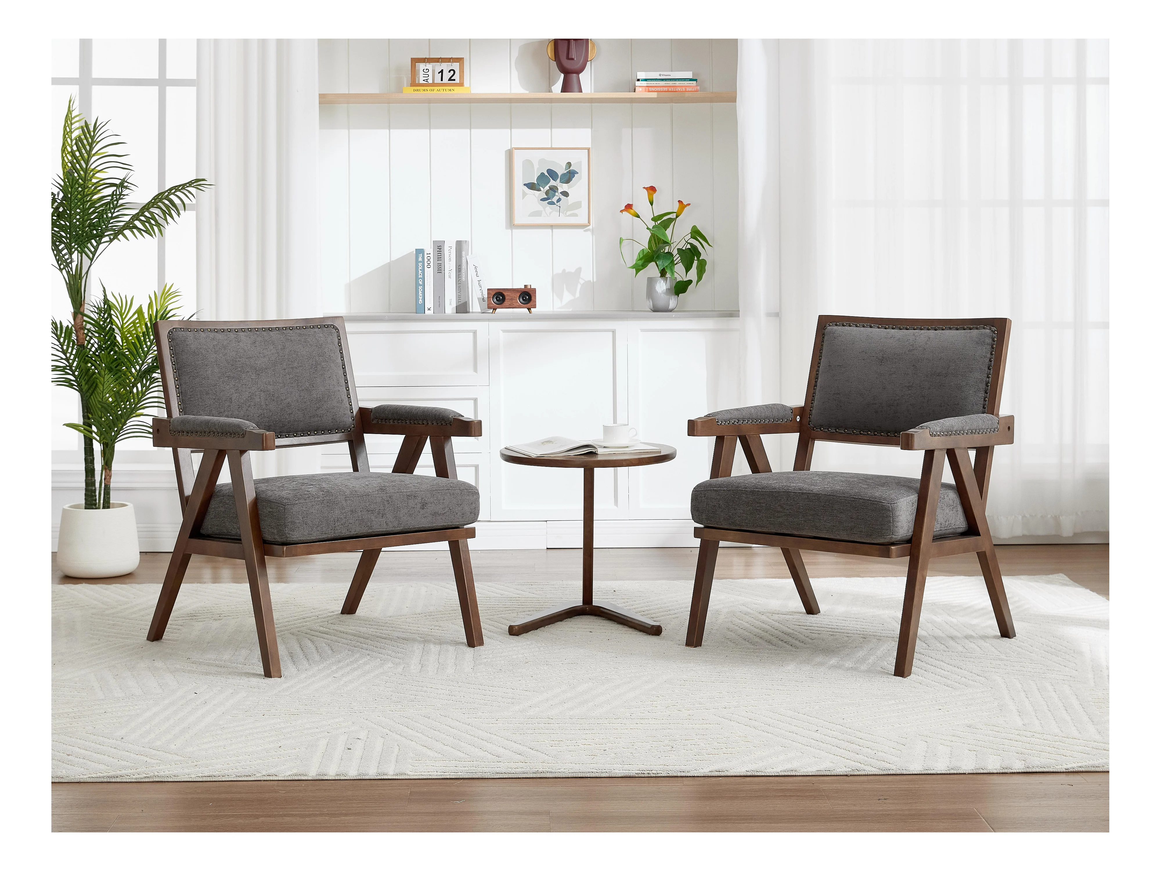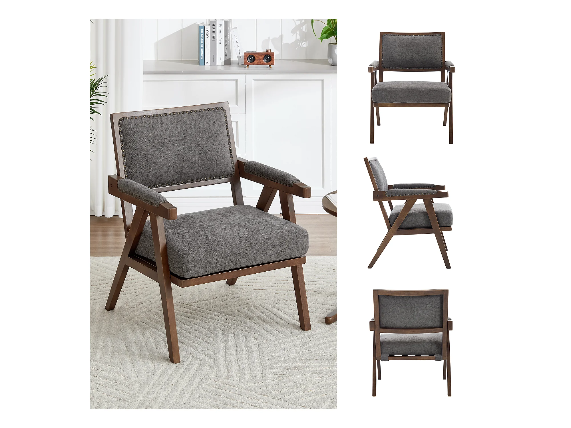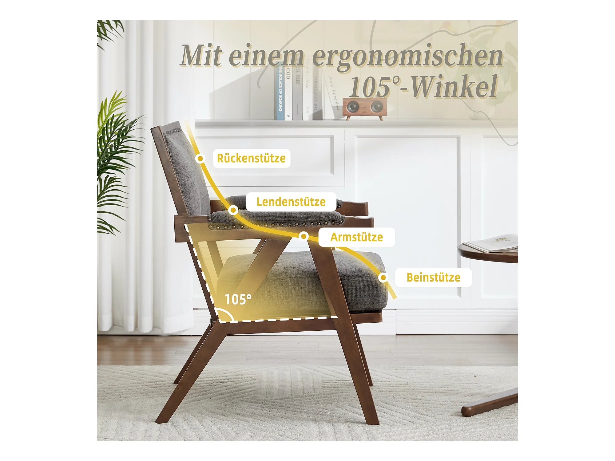 Sienna - Fauteuil Droit en Coton-Lin et Bois Massif - Fauteuil Vintage avec Dossier Ergonomique - Gris - Confortable pour Salon/Chambre/Bureau