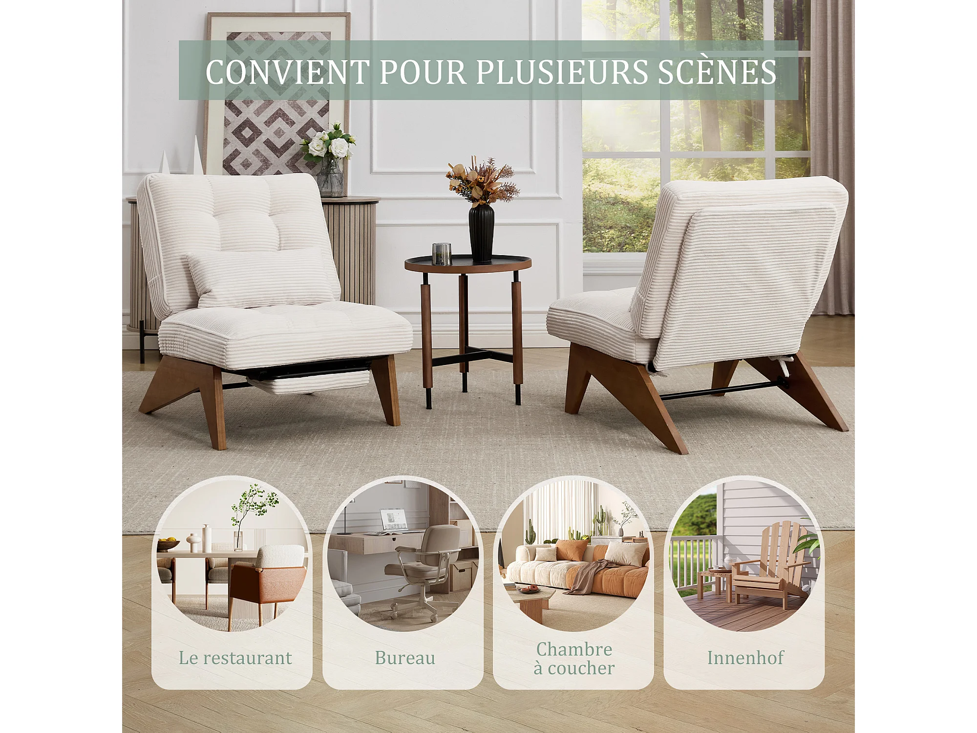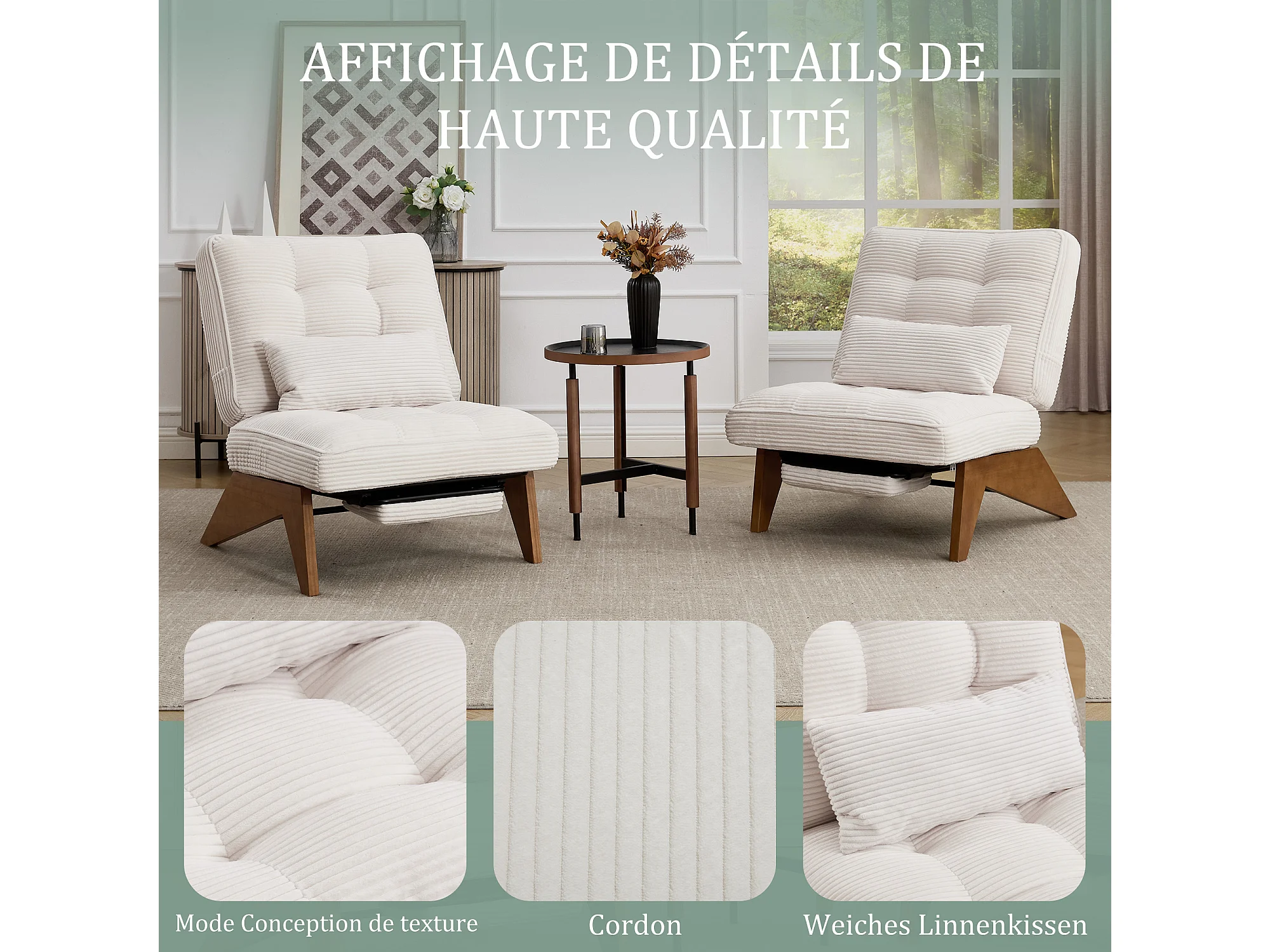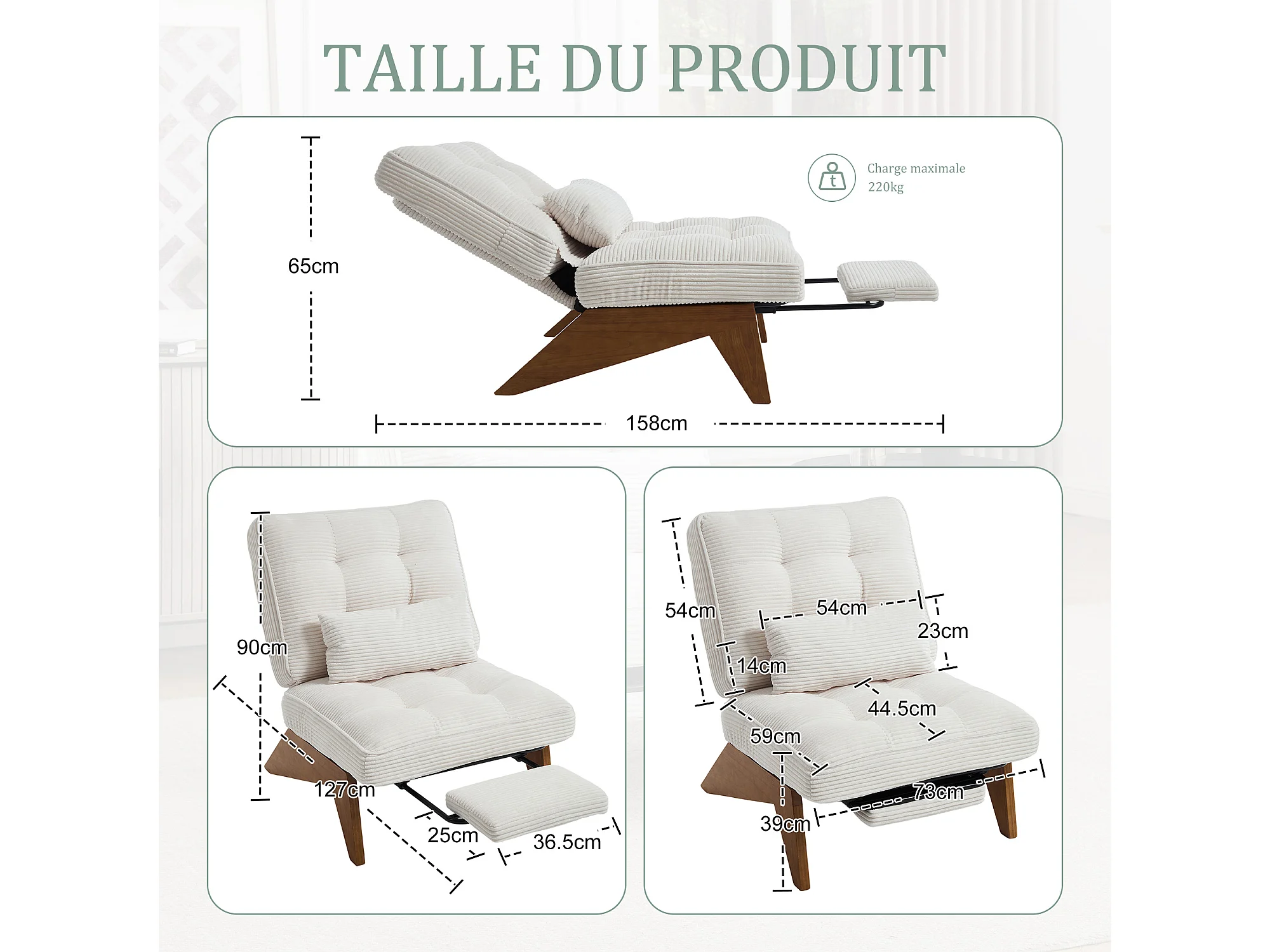 Sienna - Fauteuil Relax avec Dossier Réglable - Fauteuil Tissu avec Pieds en Bois Massif et Repose-Pieds Extensible - Confort Optimal pour Salon, Chambre et Bureau