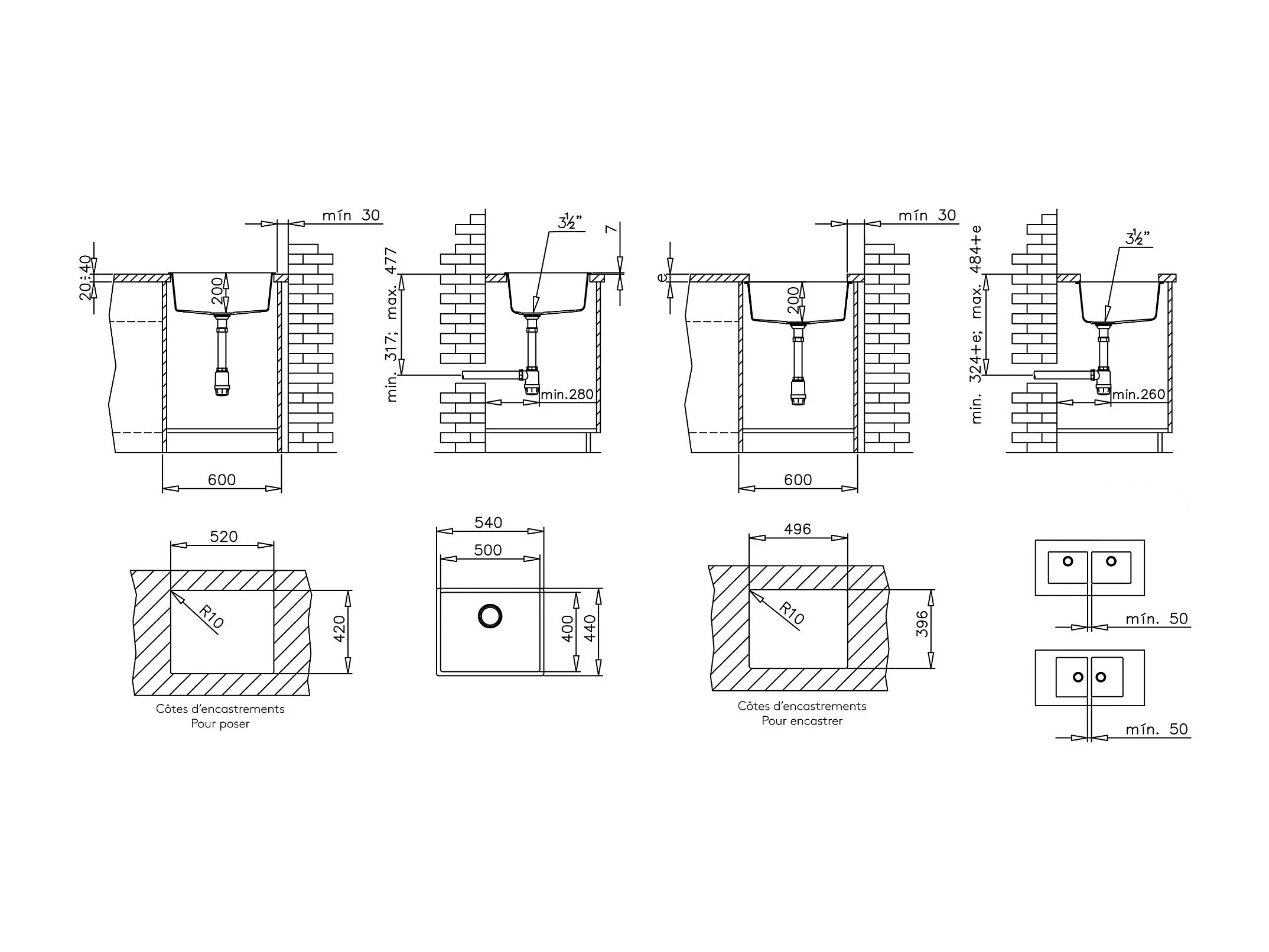 ÉVIER EN GRANIT MONOCUVE SET SIPHON ROBINET PAROS