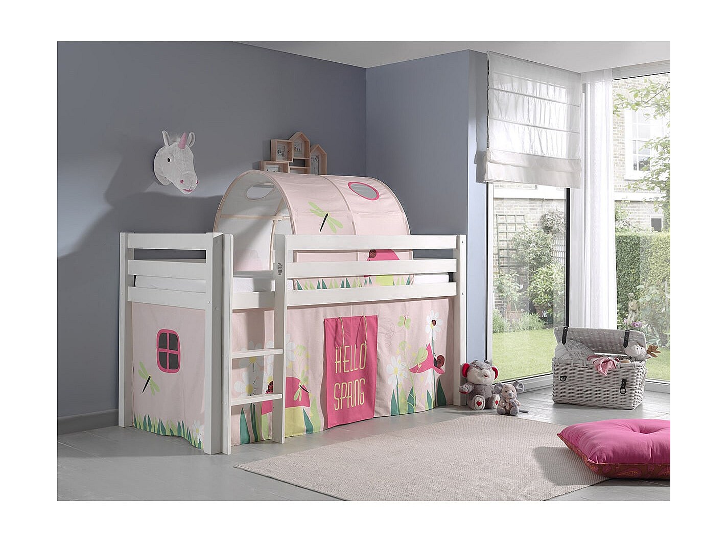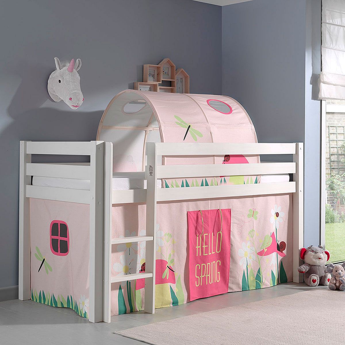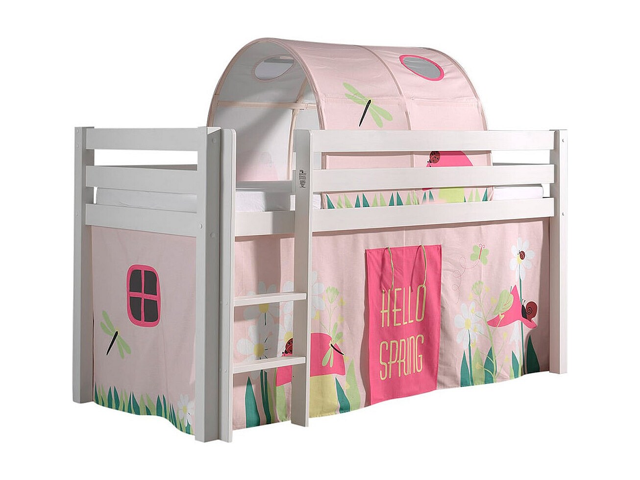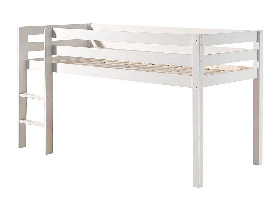 SLEEPY - Lit Mi-Haut en Pin Laqué Blanc 90x200cm Housse et Tunnel Garden