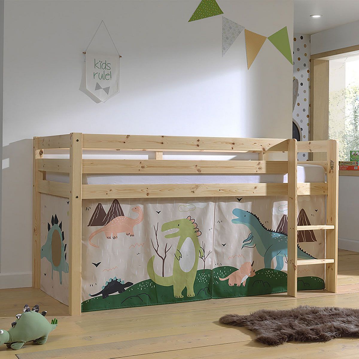 SLEEPY - Lit Mi-Haut en Pin Naturel 90x200cm Housse Dino