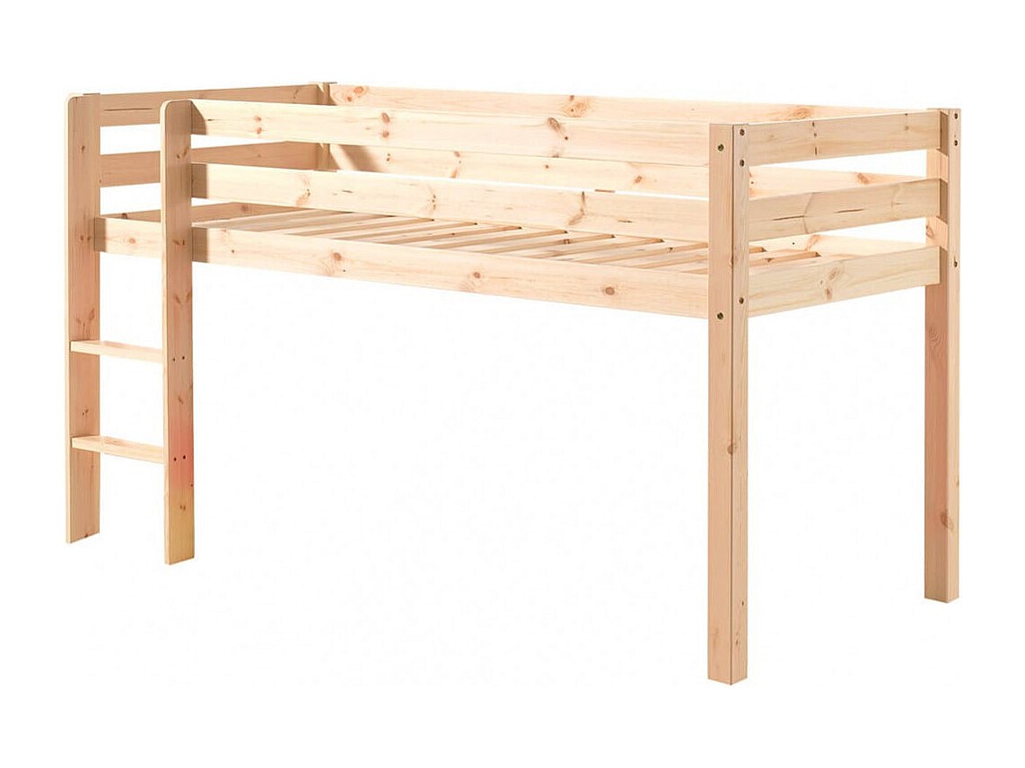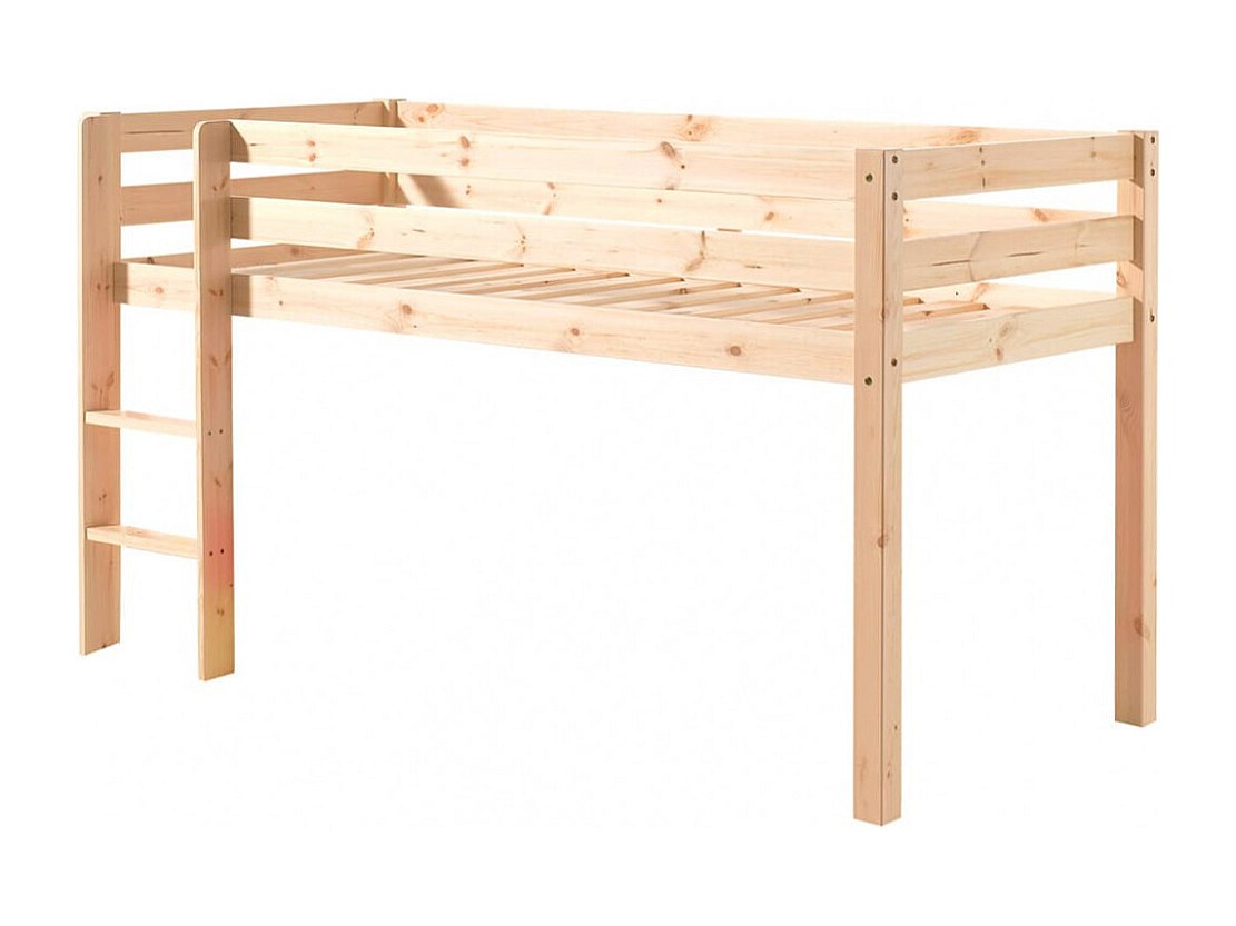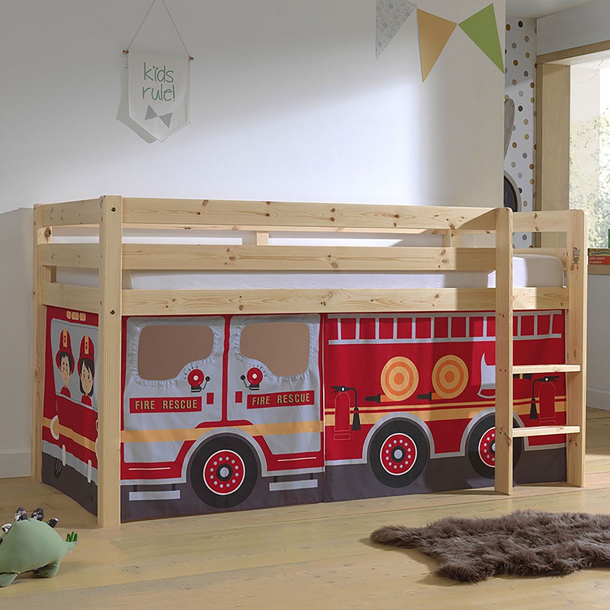SLEEPY - Lit Mi-Haut en Pin Naturel 90x200cm Housse Pompiers