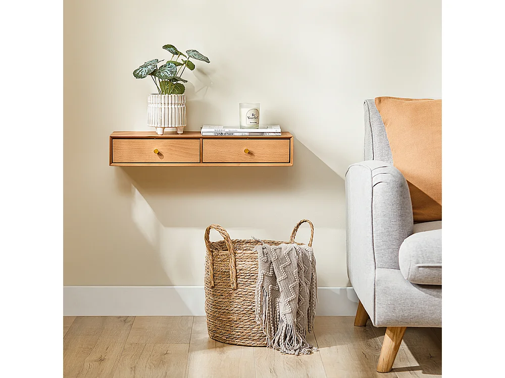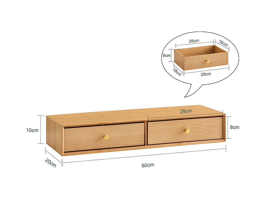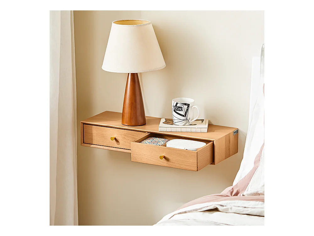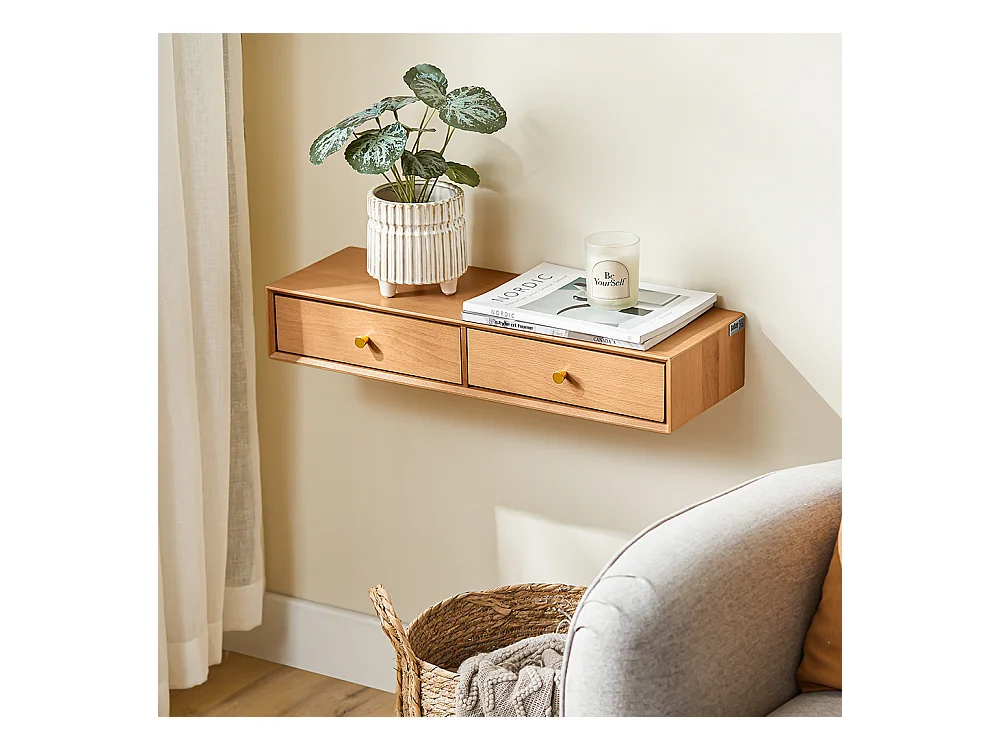 SoBuy Étagère Murale Flottante à 2 Tiroirs en Hêtre Massif Naturel