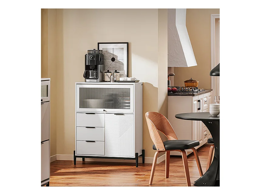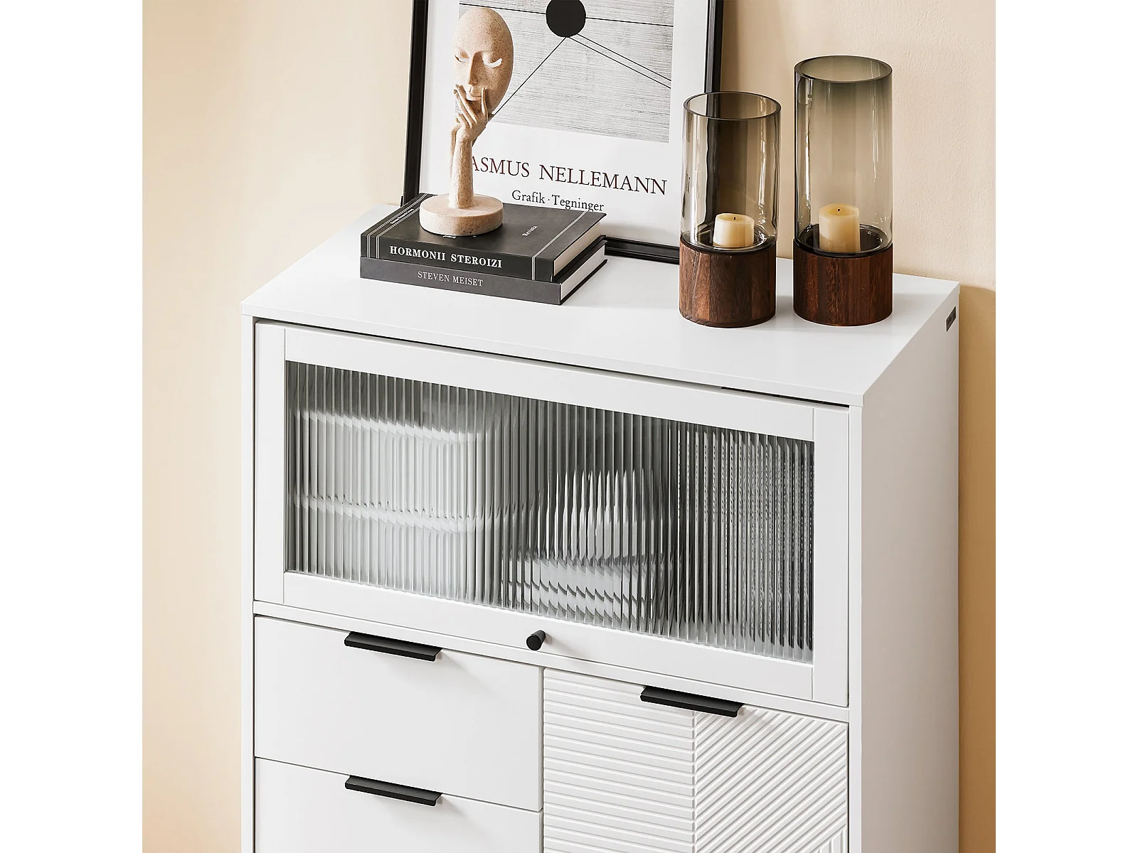 SoBuy Meuble Entrée Commode Armoire Rangement Buffet Multifonctionnel 3 Tiroirs 2 Portes L86xP40xH108 cm FSB94-W