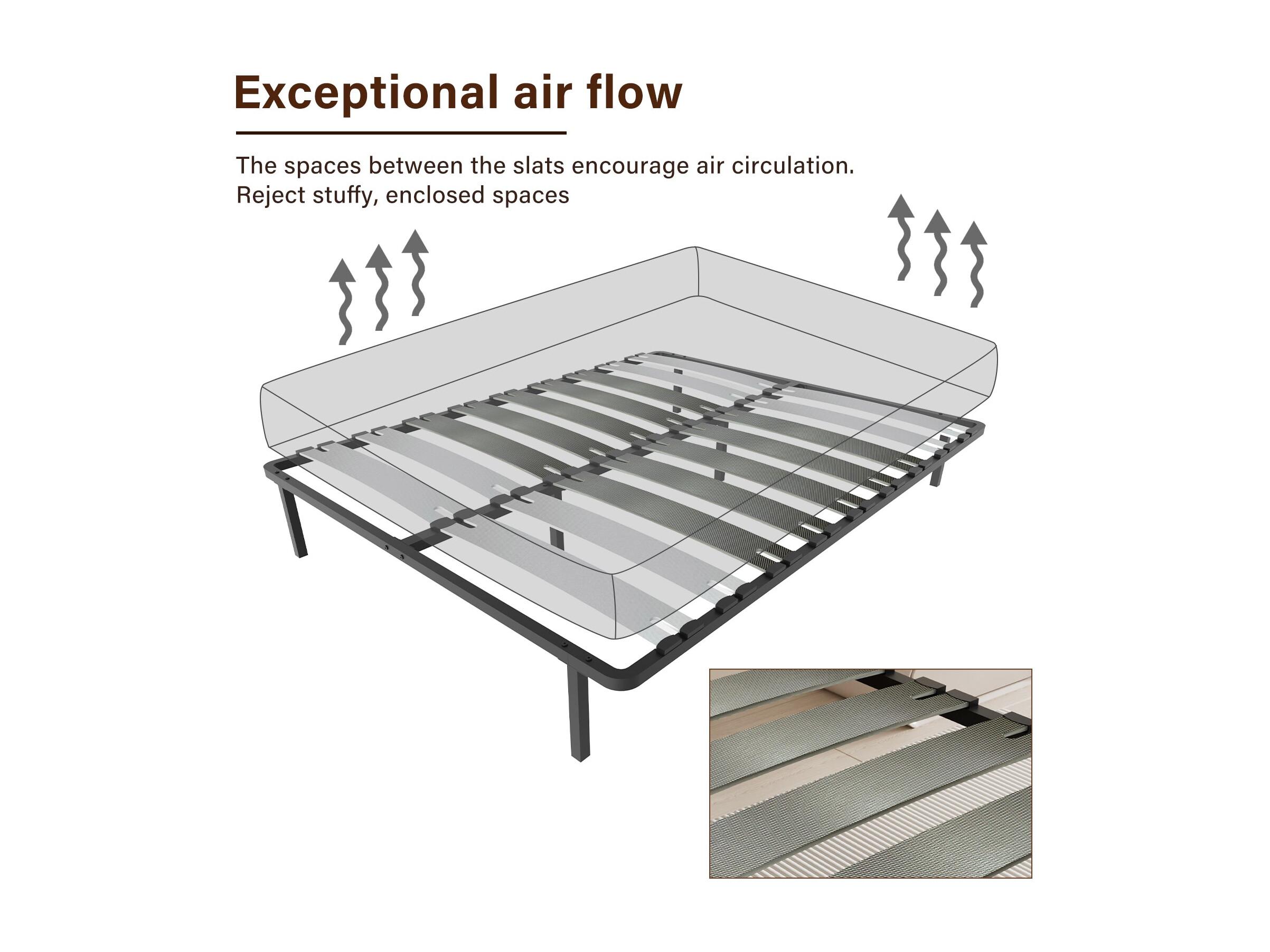 Sommier à Lattes 160x200cm, 20 lattes bois, 6Pieds Inclus
