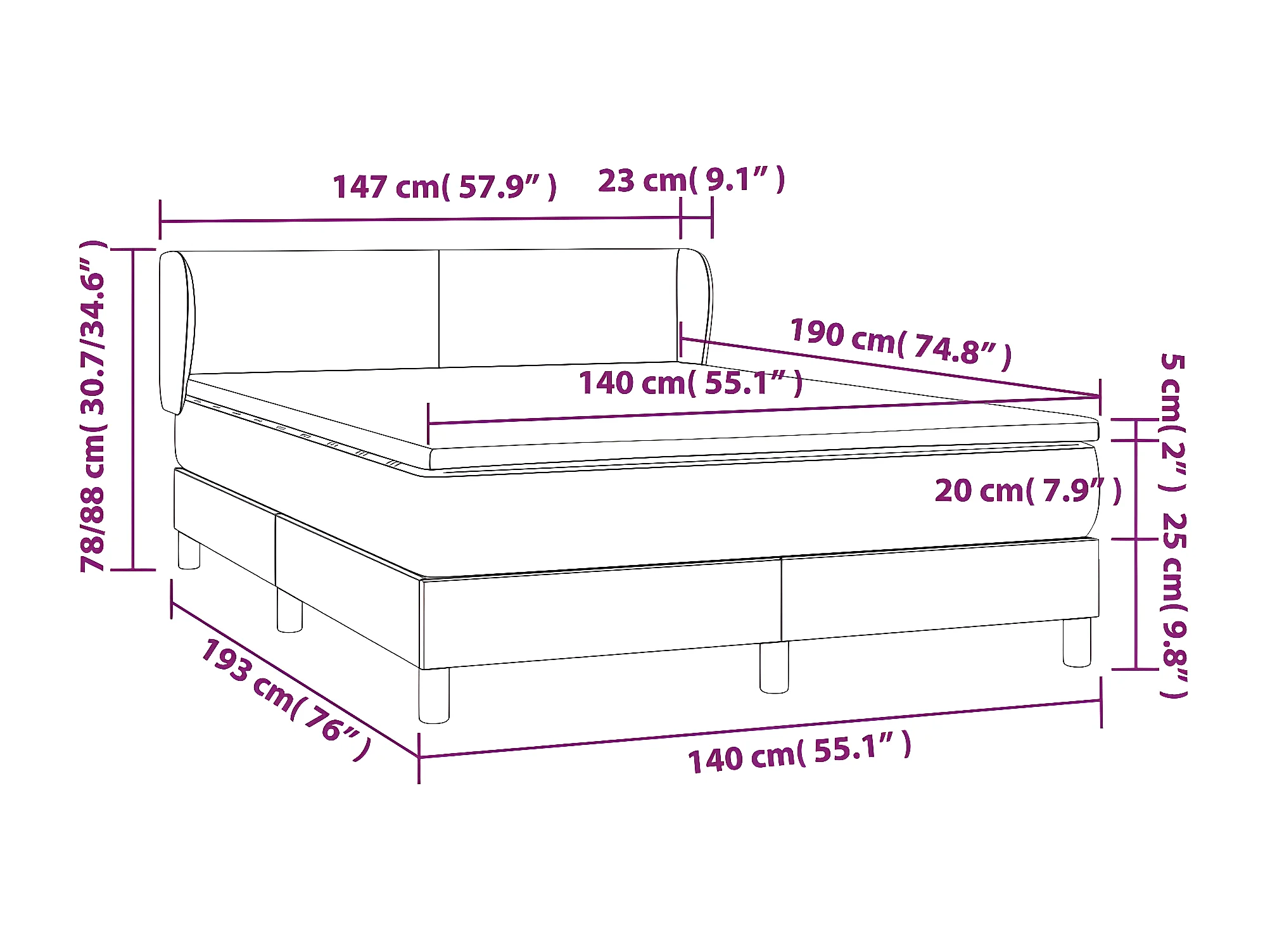 Sommier à lattes de lit avec matelas Blanc 140x190 Similicuir