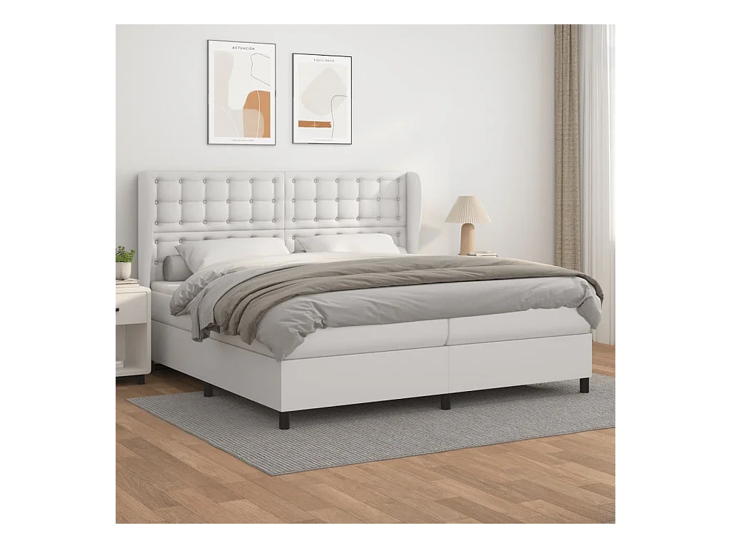 Sommier à lattes de lit avec matelas Blanc 200x200 Similicuir