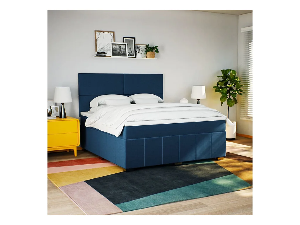 Sommier à lattes de lit avec matelas Bleu 180x200 cm Tissu