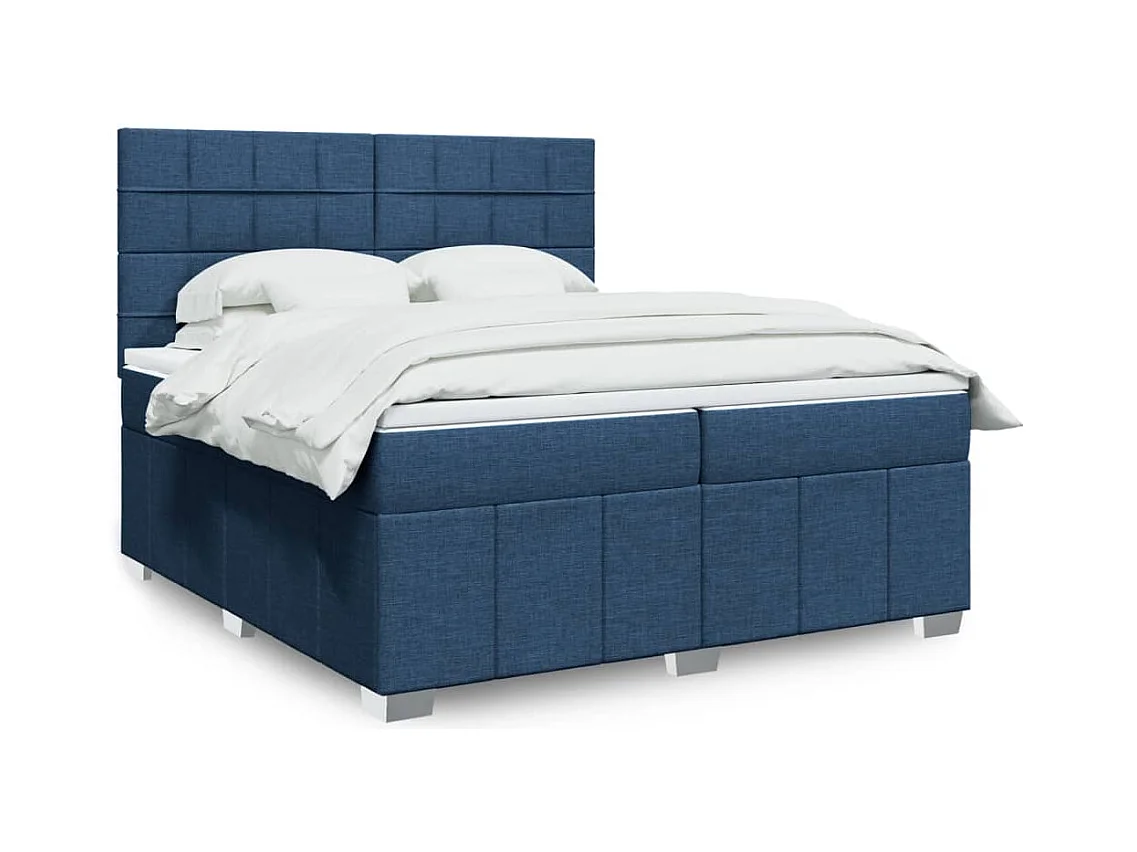 Sommier à lattes de lit avec matelas Bleu 200x200 cm Tissu
