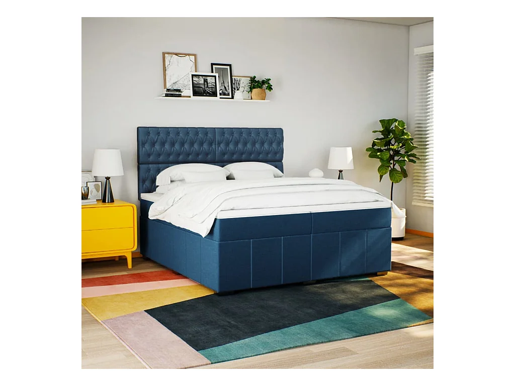 Sommier à lattes de lit avec matelas Bleu 200x200 cm Tissu