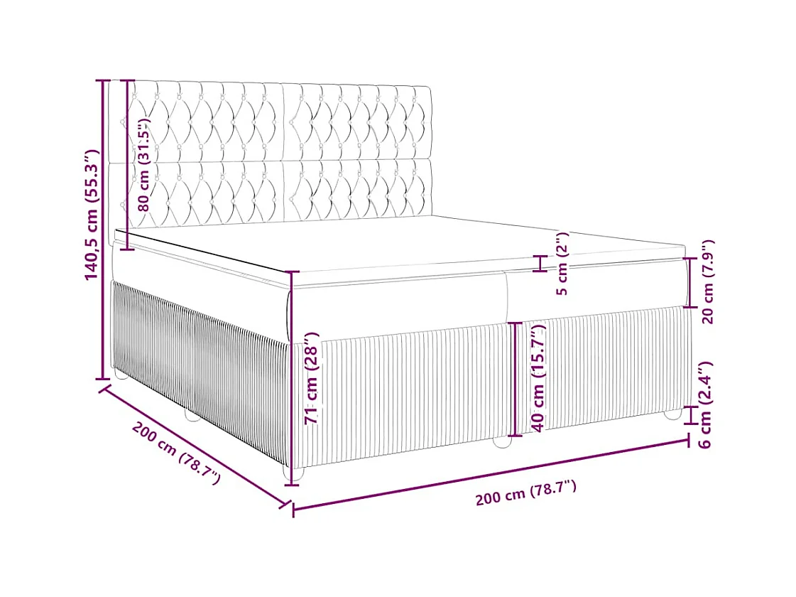 Sommier à lattes de lit avec matelas Bleu 200x200 cm Tissu