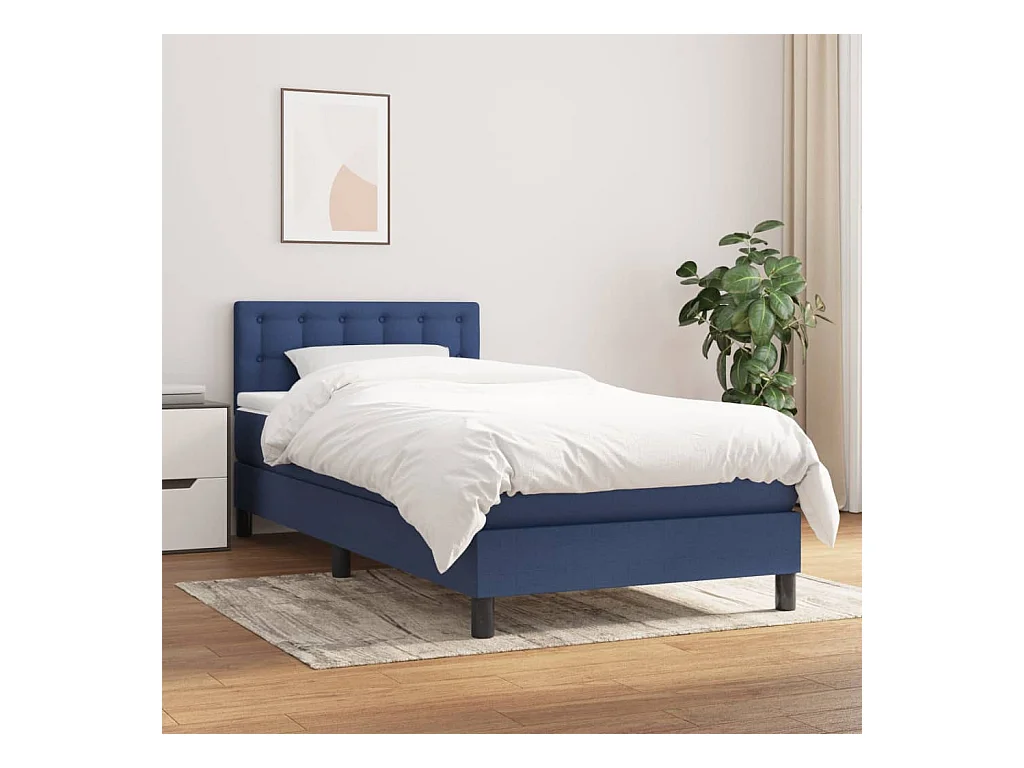 Sommier à lattes de lit avec matelas Bleu 90x190 Tissu