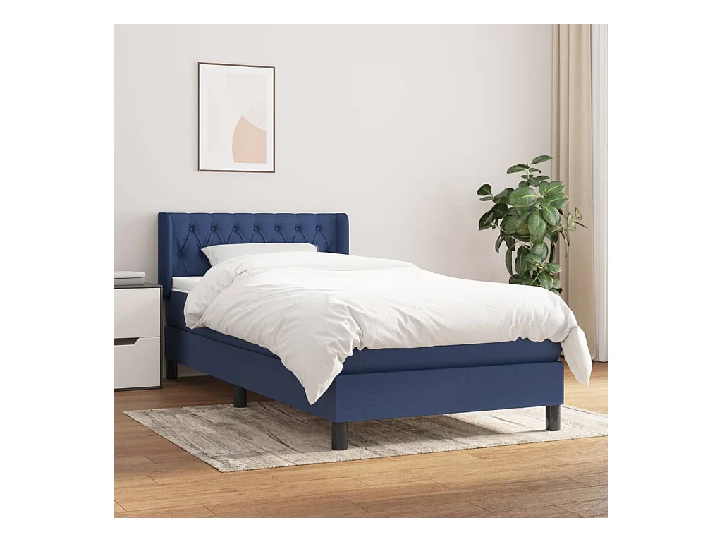 Sommier à lattes de lit avec matelas Bleu 90x190 Tissu