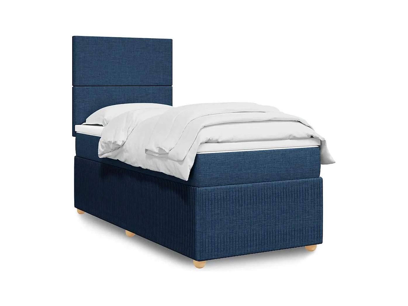 Sommier à lattes de lit avec matelas Bleu 90x200 cm Tissu