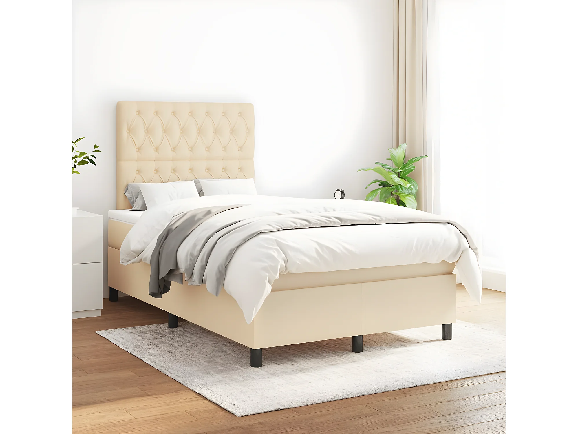 Sommier à lattes de lit avec matelas crème 120x190 tissu
