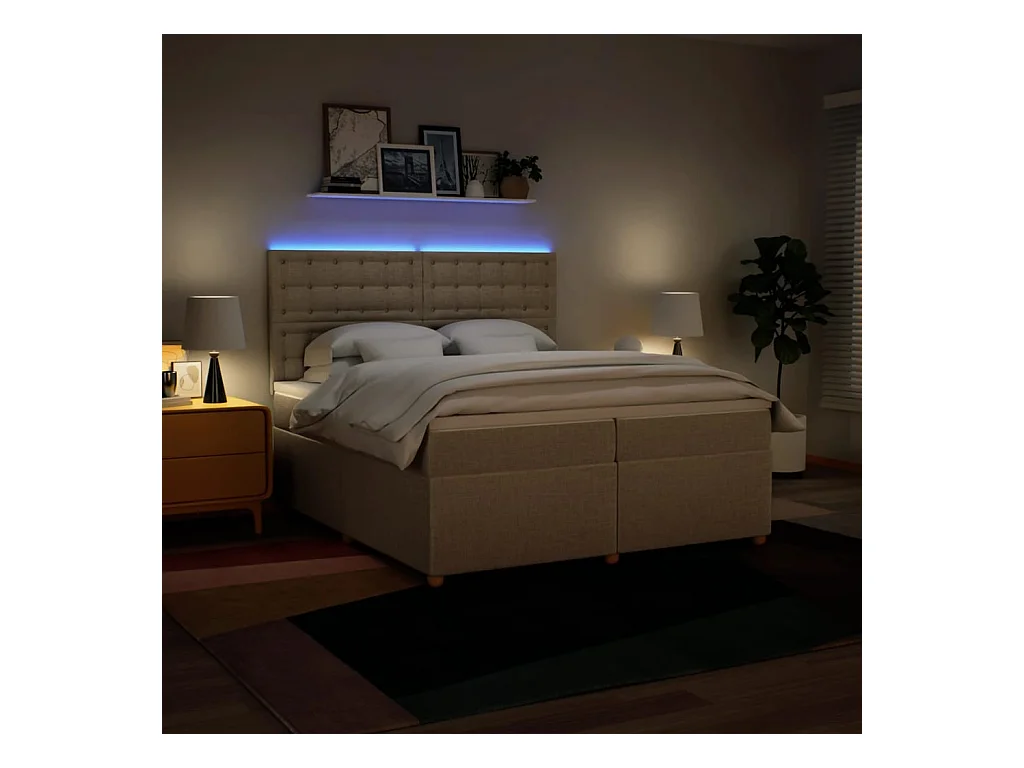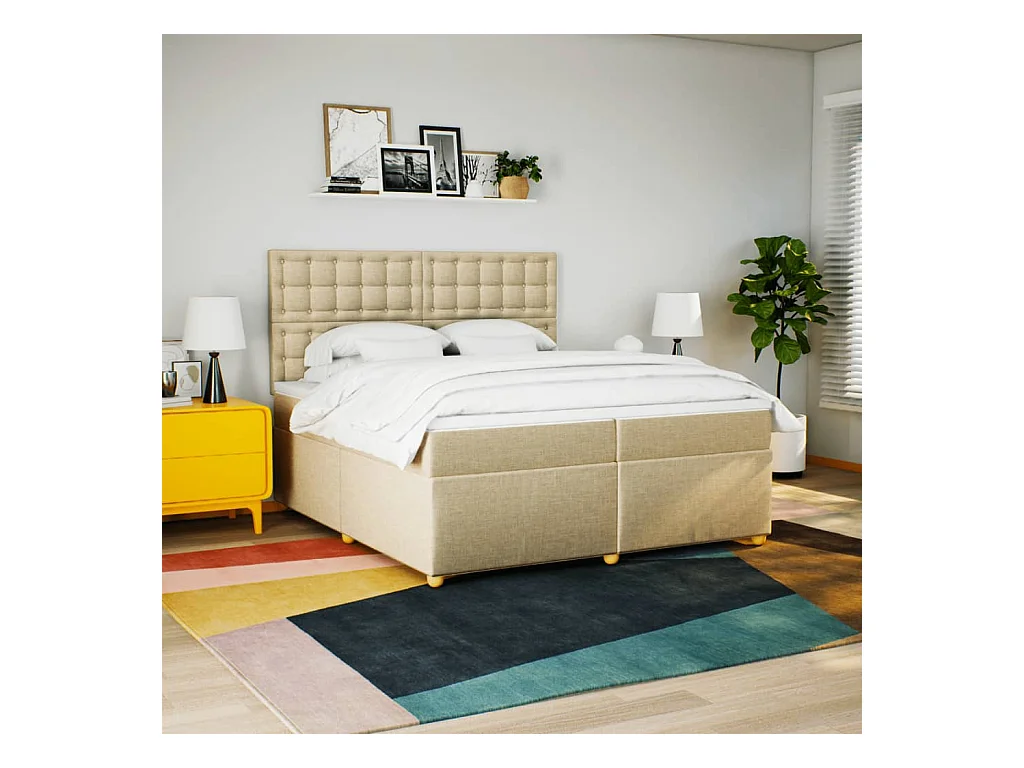 Sommier à lattes de lit avec matelas Crème 200x200 cm Tissu