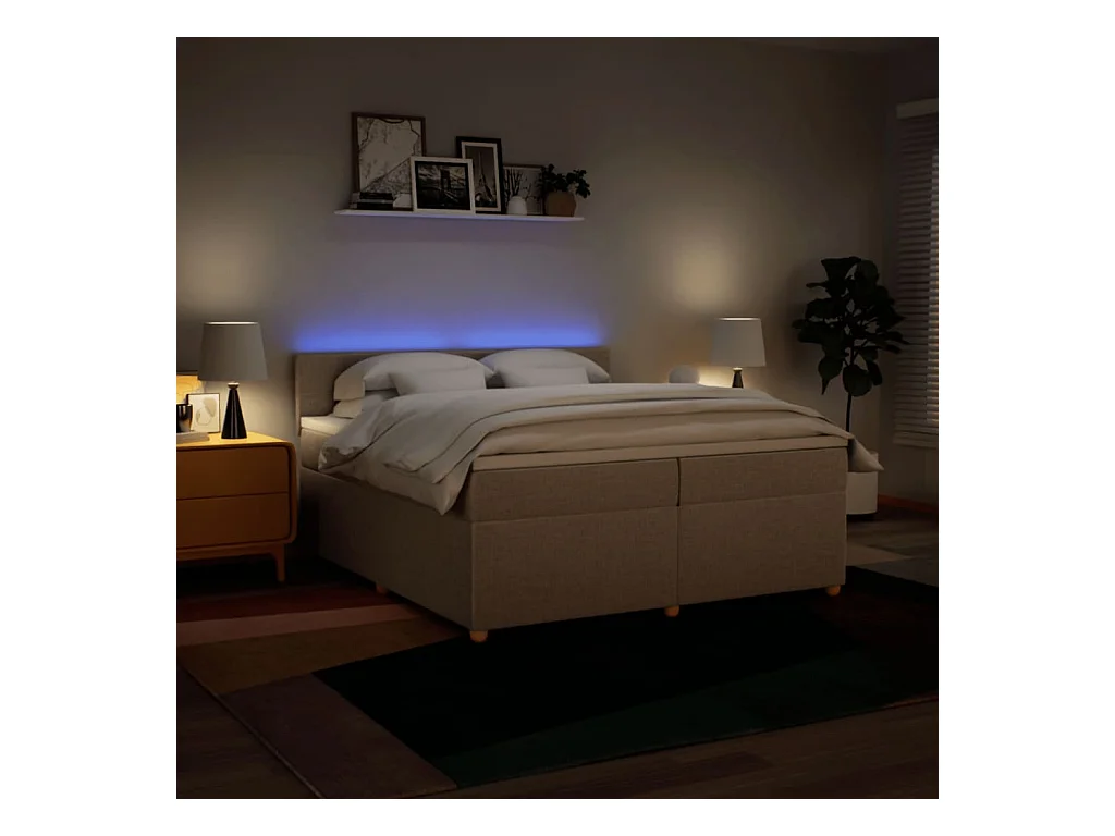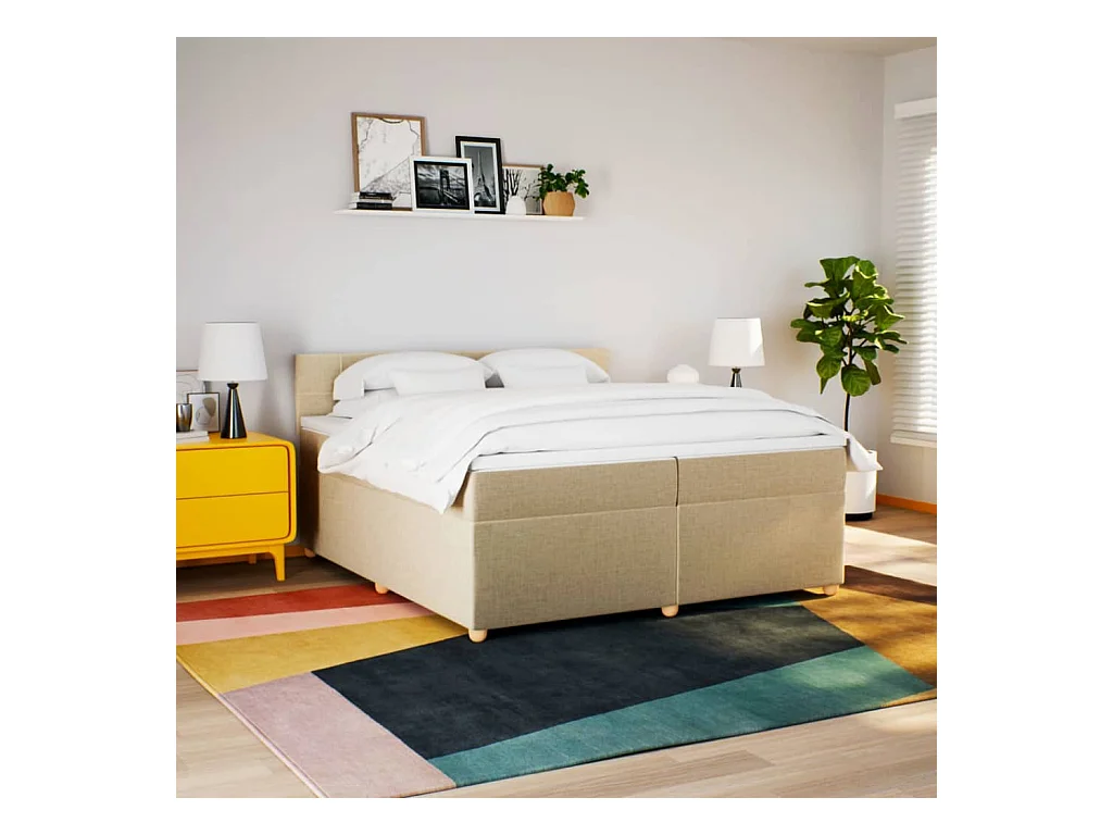 Sommier à lattes de lit avec matelas Crème 200x200 cm Tissu