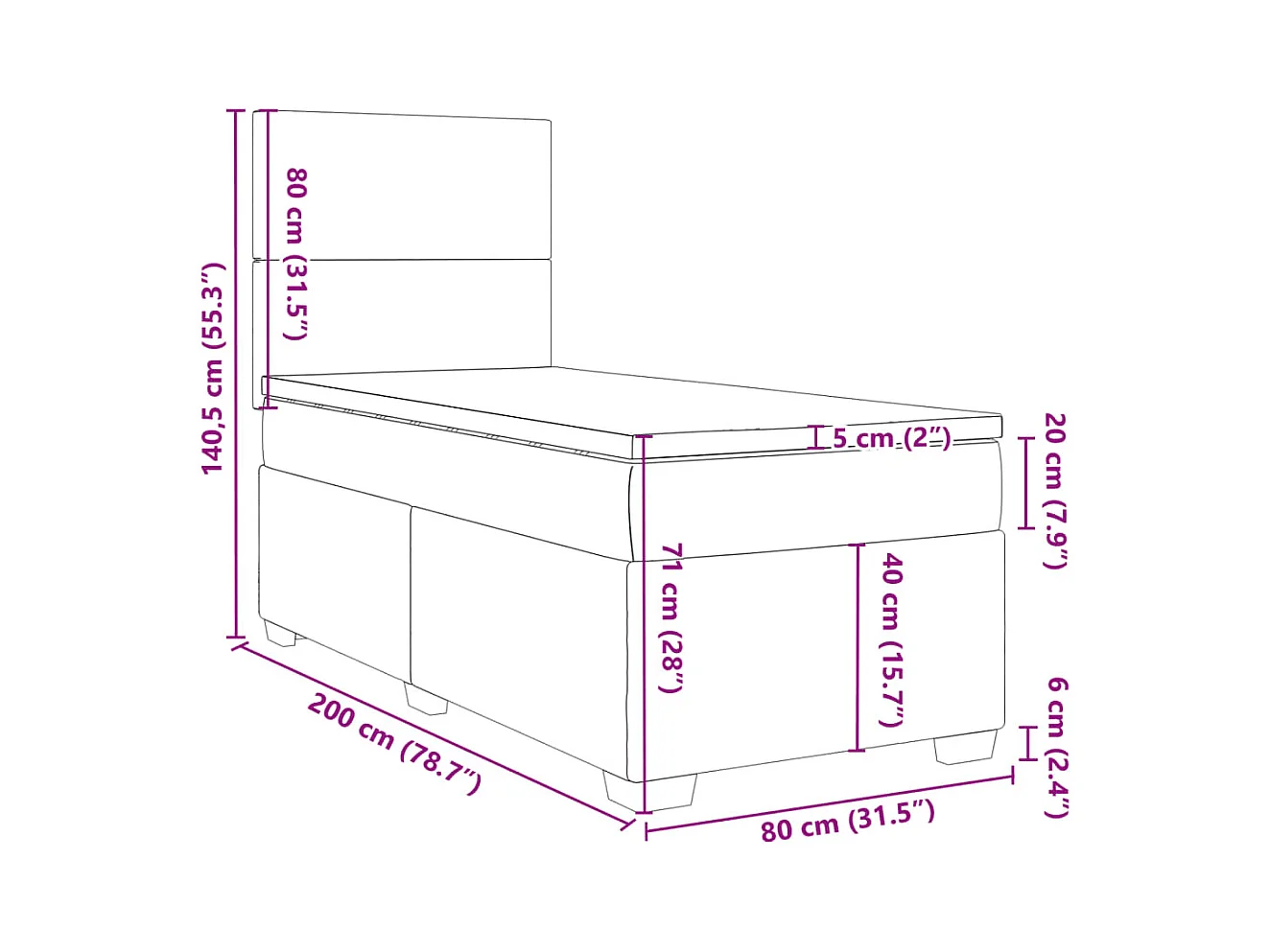 Sommier à lattes de lit avec matelas Crème 80x200 cm Tissu