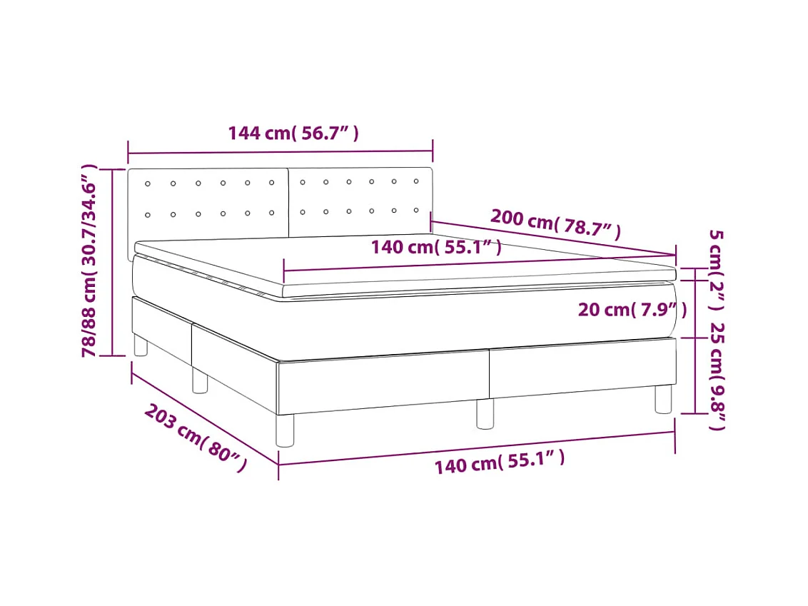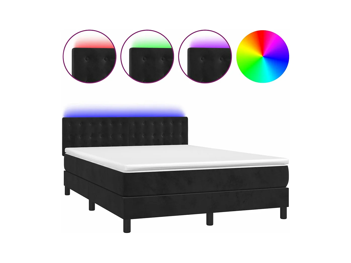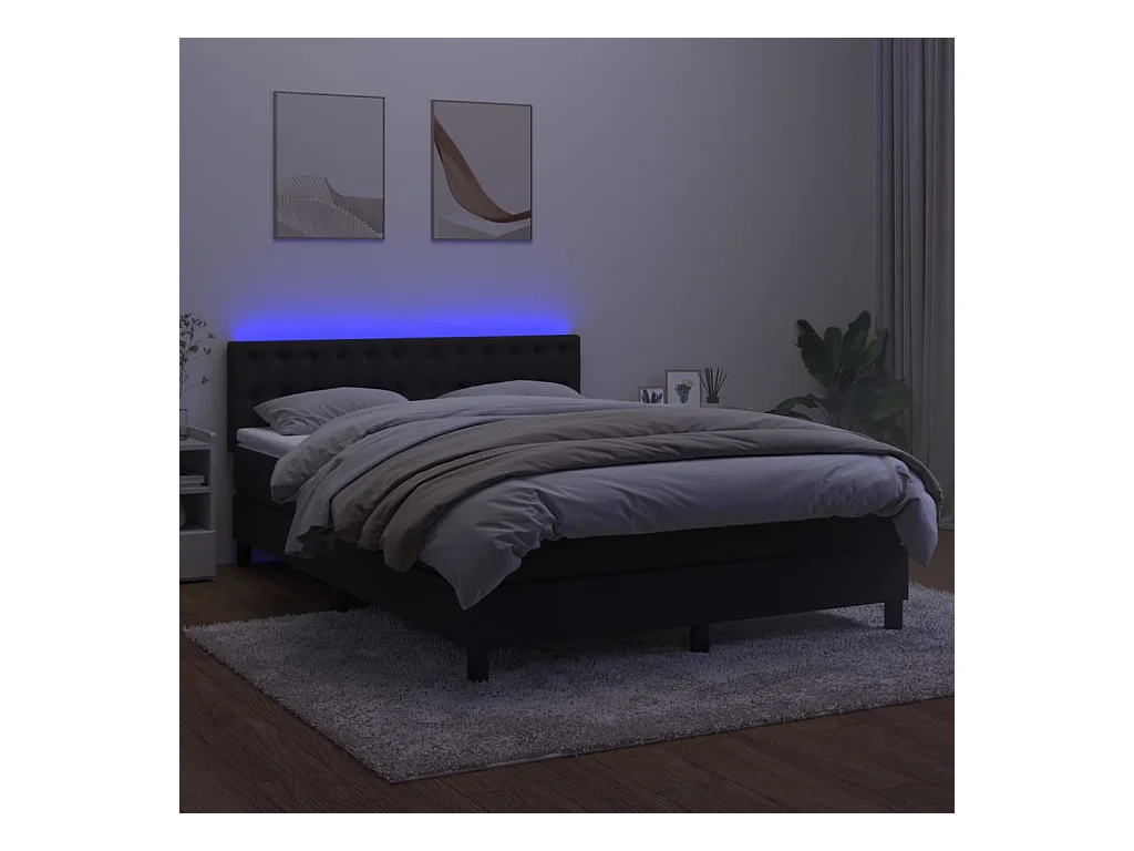 Sommier à lattes de lit avec matelas et LED Noir 140x200