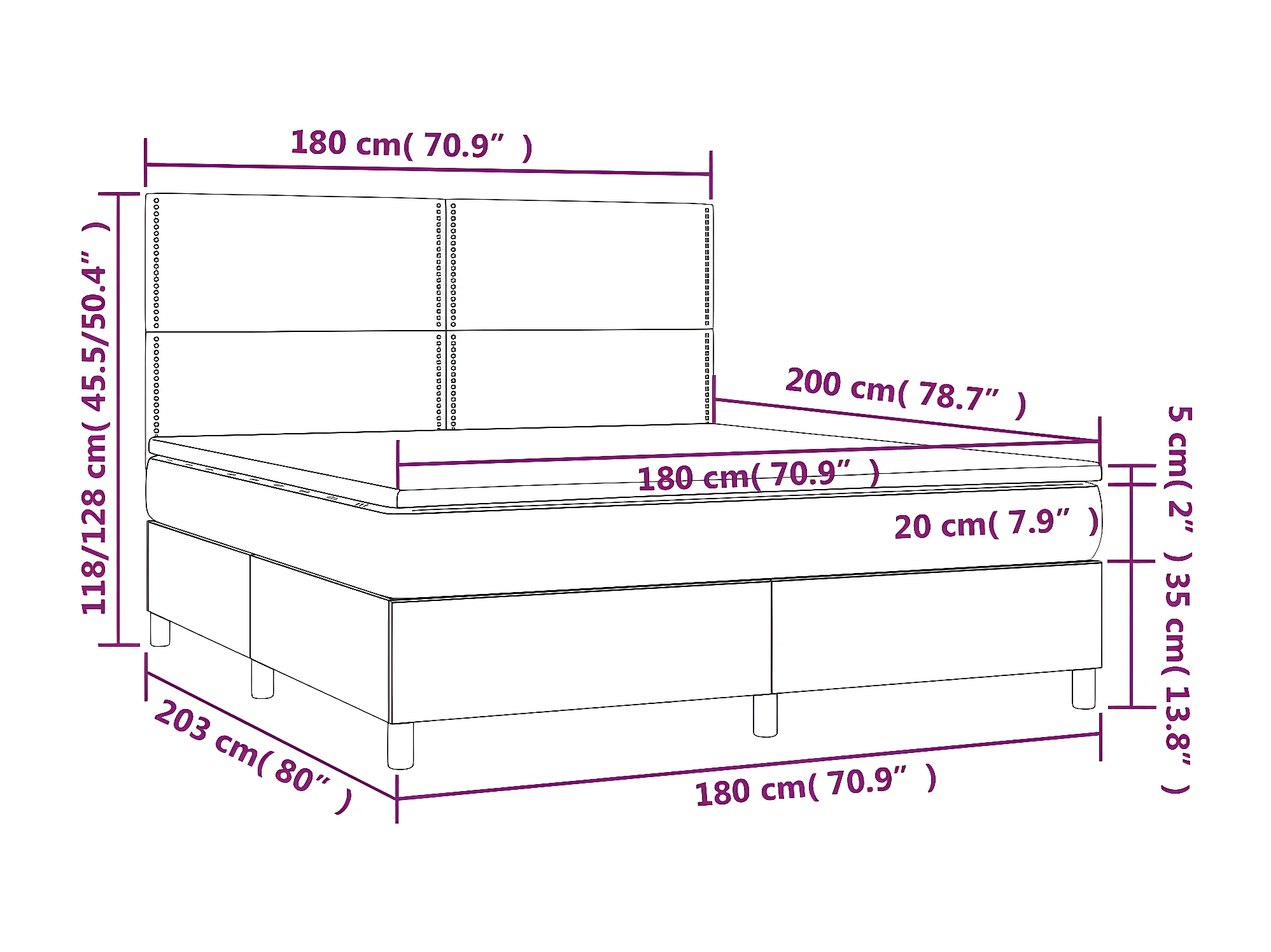 Sommier à lattes de lit avec matelas et LED Noir 180x200