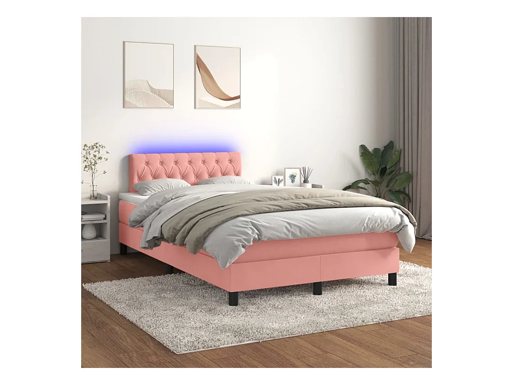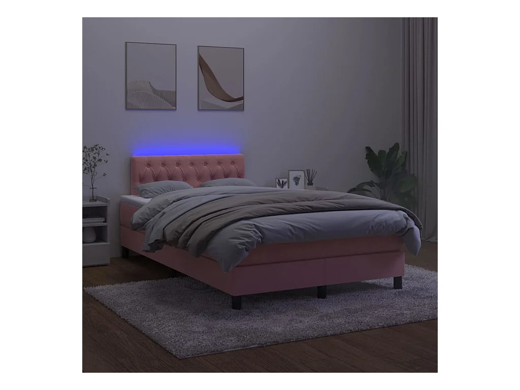Sommier à lattes de lit avec matelas et LED Rose 120x200