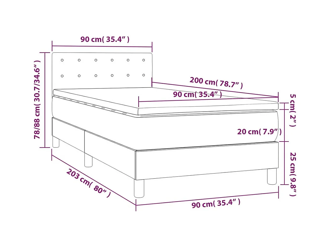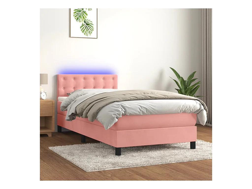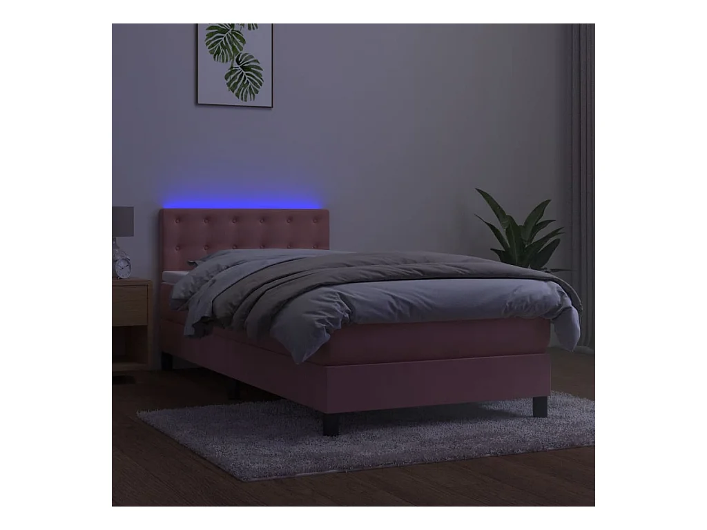 Sommier à lattes de lit avec matelas et LED Rose 90x200
