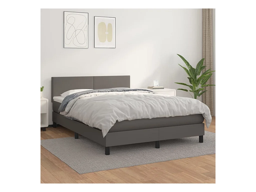 Sommier à lattes de lit avec matelas Gris 140x200 Similicuir