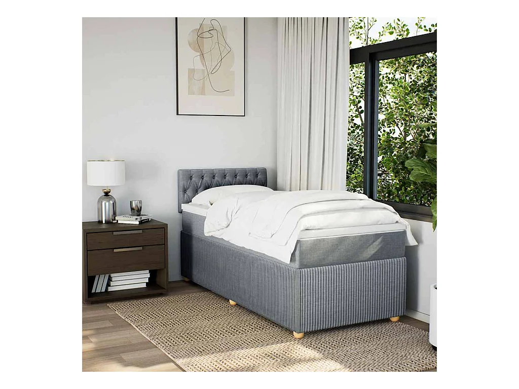 Sommier à lattes de lit avec matelas Gris clair 100x200cm Tissu
