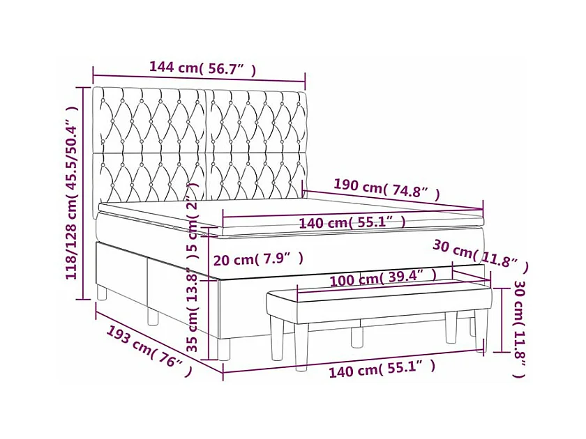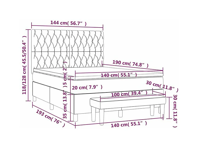 Sommier à lattes de lit avec matelas Gris clair 140x190 Tissu