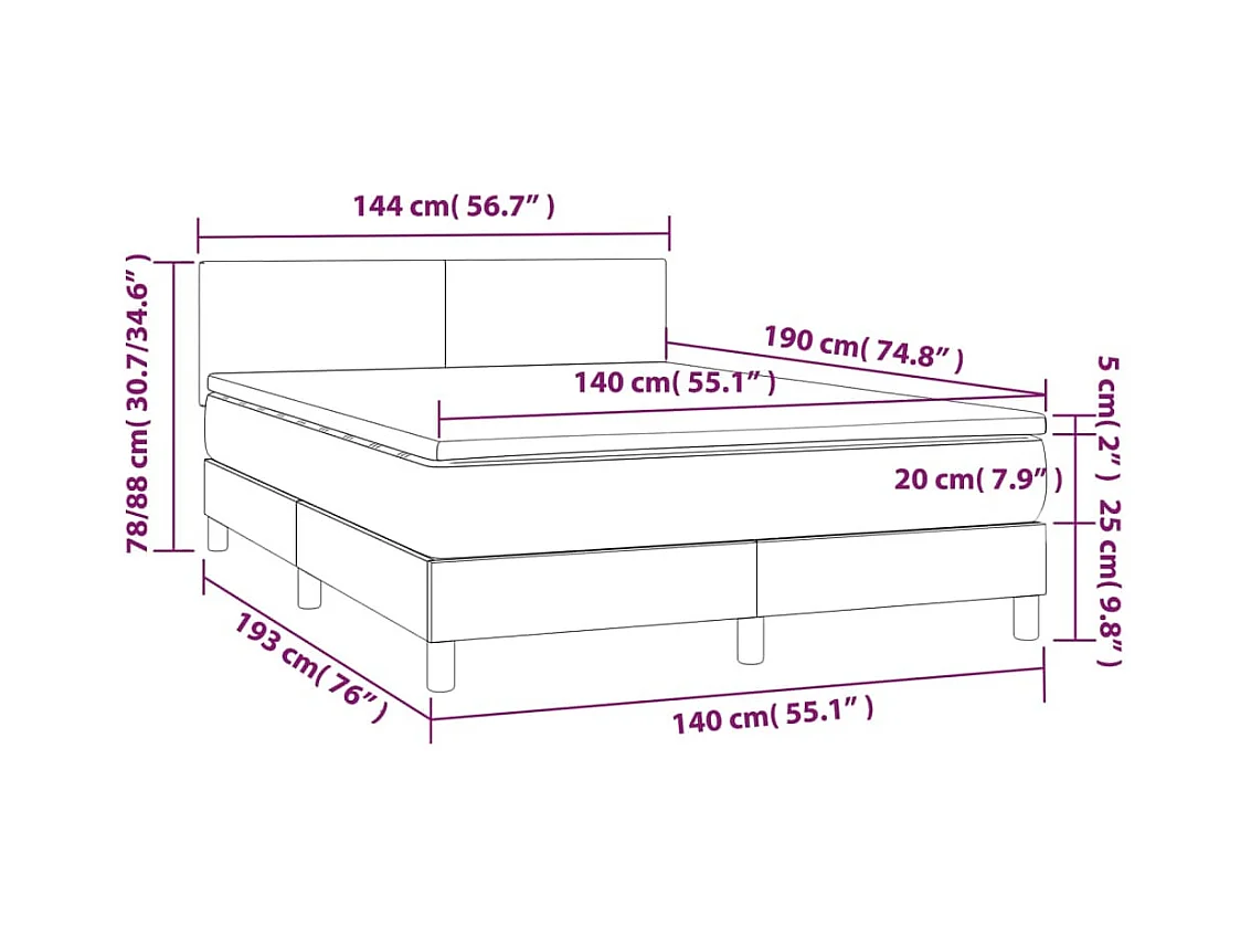 Sommier à lattes de lit avec matelas Gris foncé 140x190 Tissu
