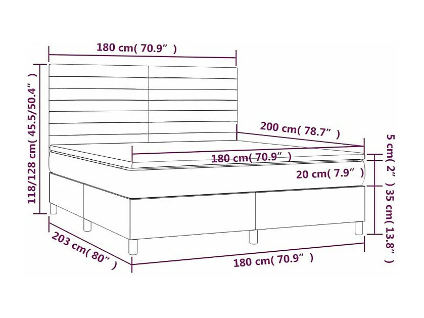 Sommier à lattes de lit avec matelas Gris foncé 180x200 Tissu